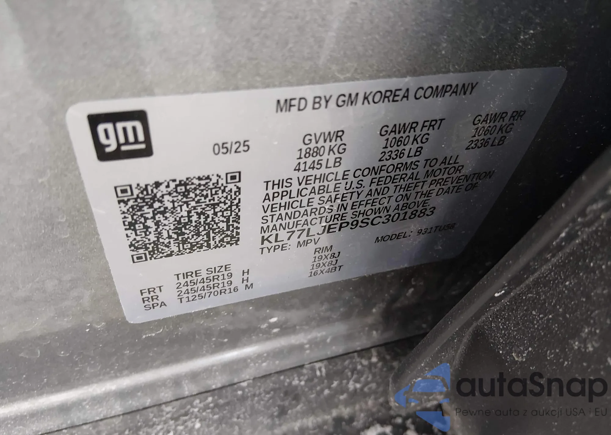 LOT: 44156057 VIN: KL77LJEP9SC301883