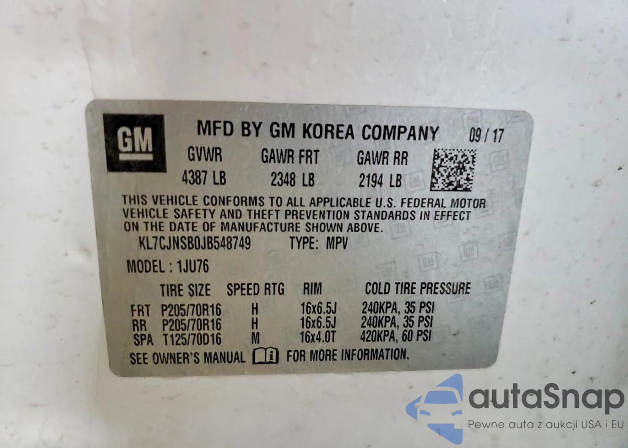• VIN KL7CJNSB0JB548749