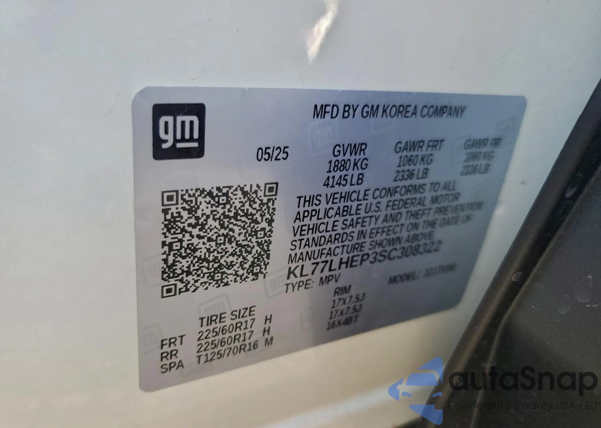 LOT: 96947045 VIN: KL77LHEP3SC308322