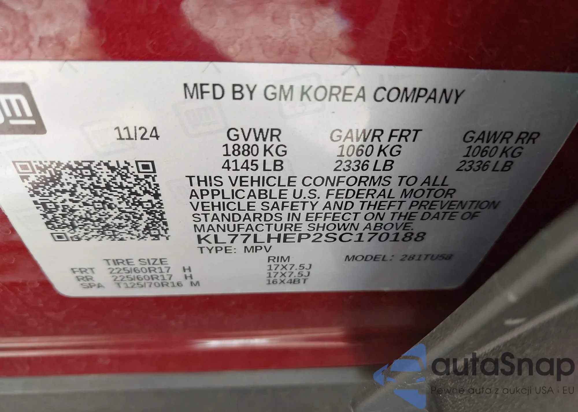 LOT: 42309686 VIN: KL77LHEP2SC170188