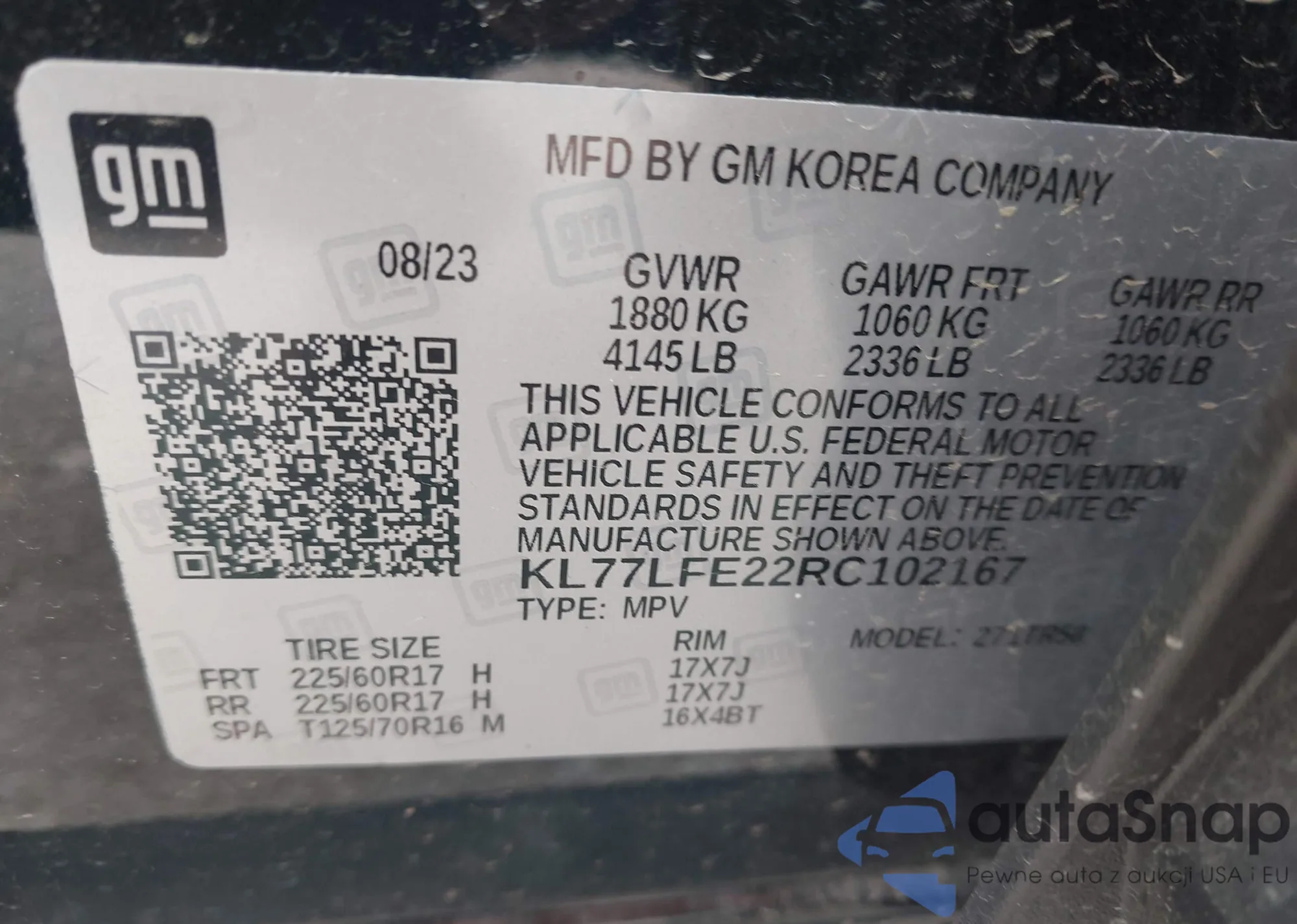 • VIN KL77LFE22RC102167