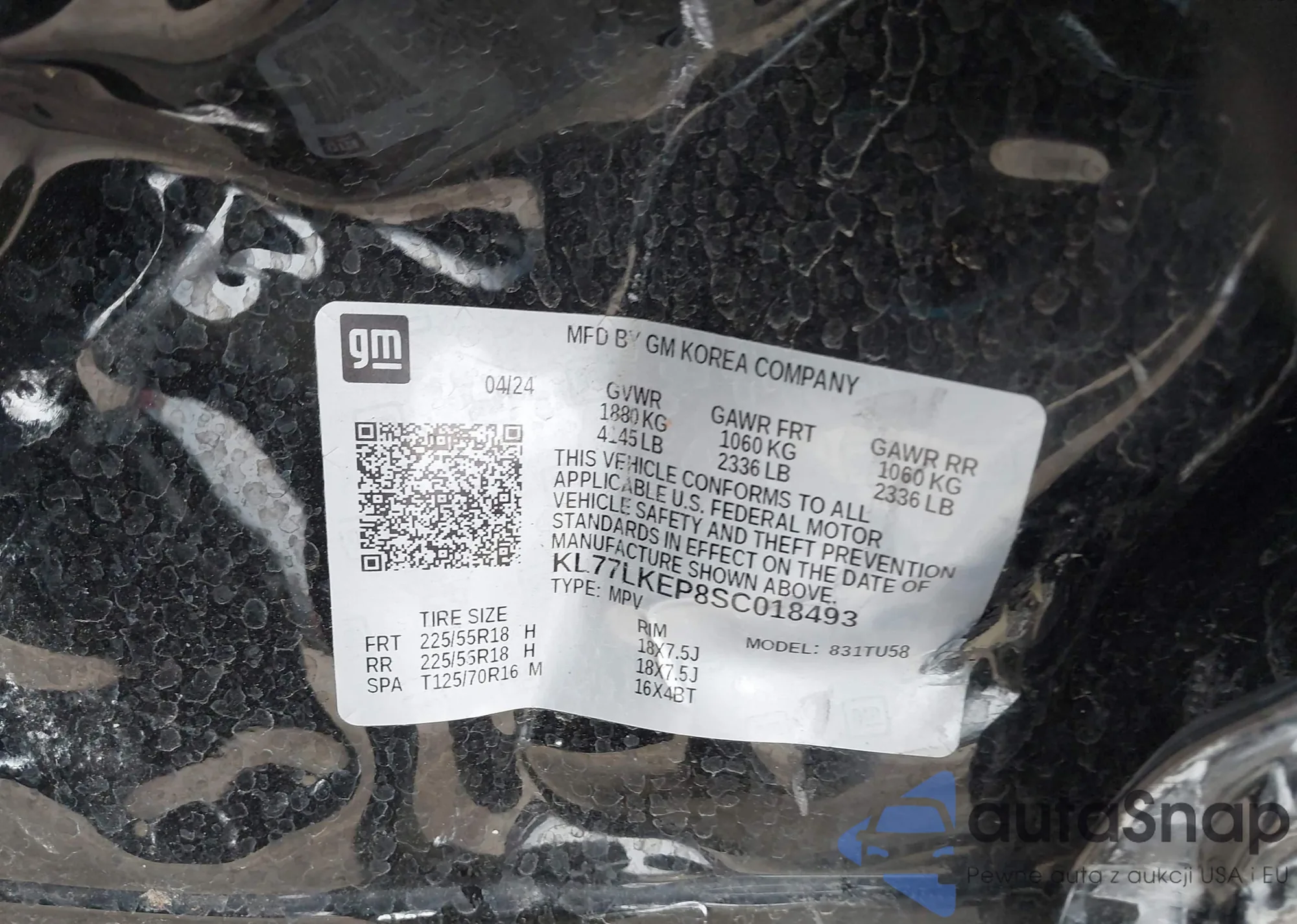 • VIN KL77LKEP8SC018493