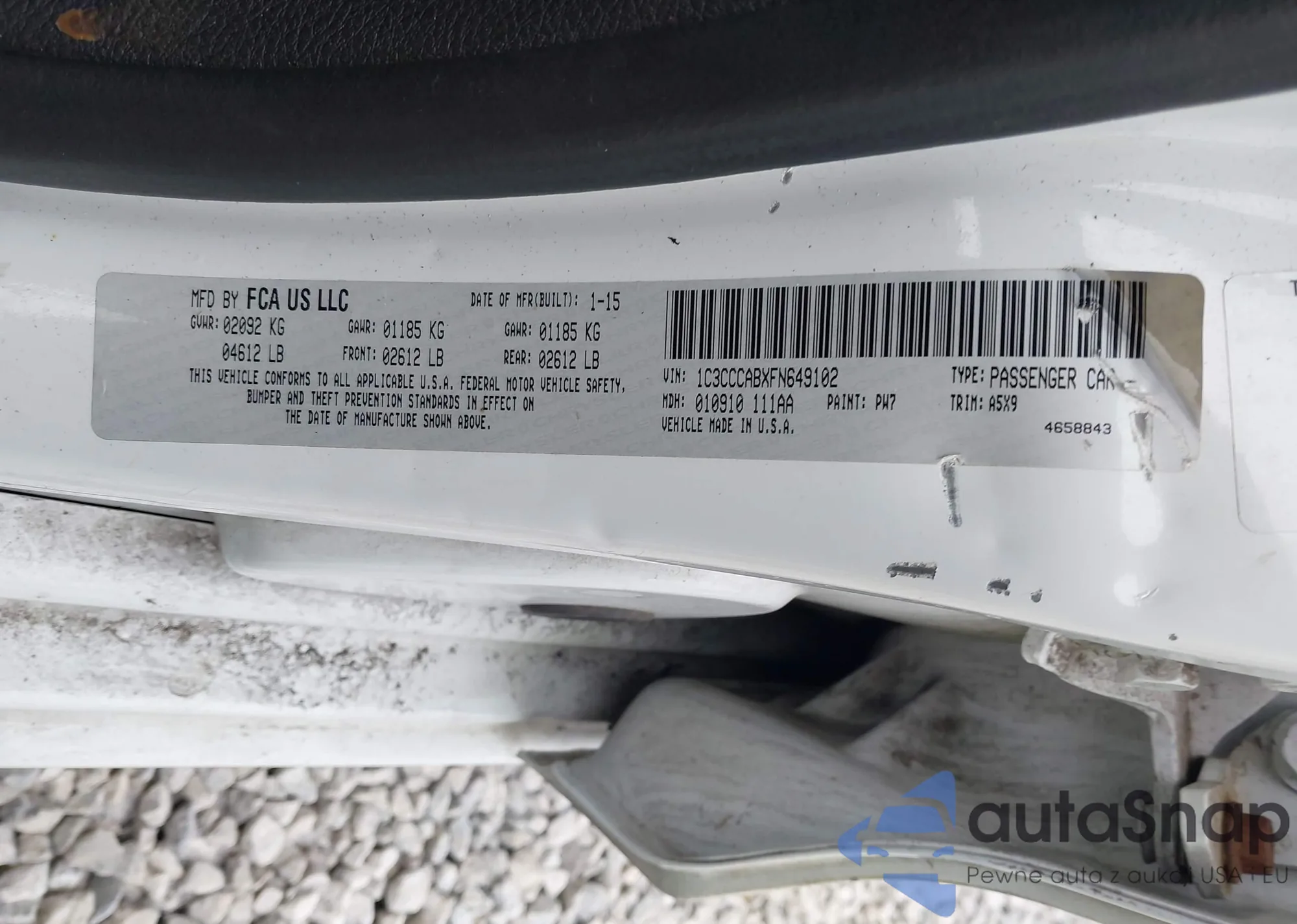 LOT: 43971670 VIN: 1C3CCCABXFN649102