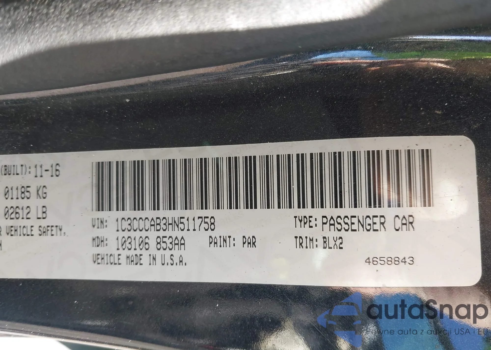 • VIN 1C3CCCAB3HN511758