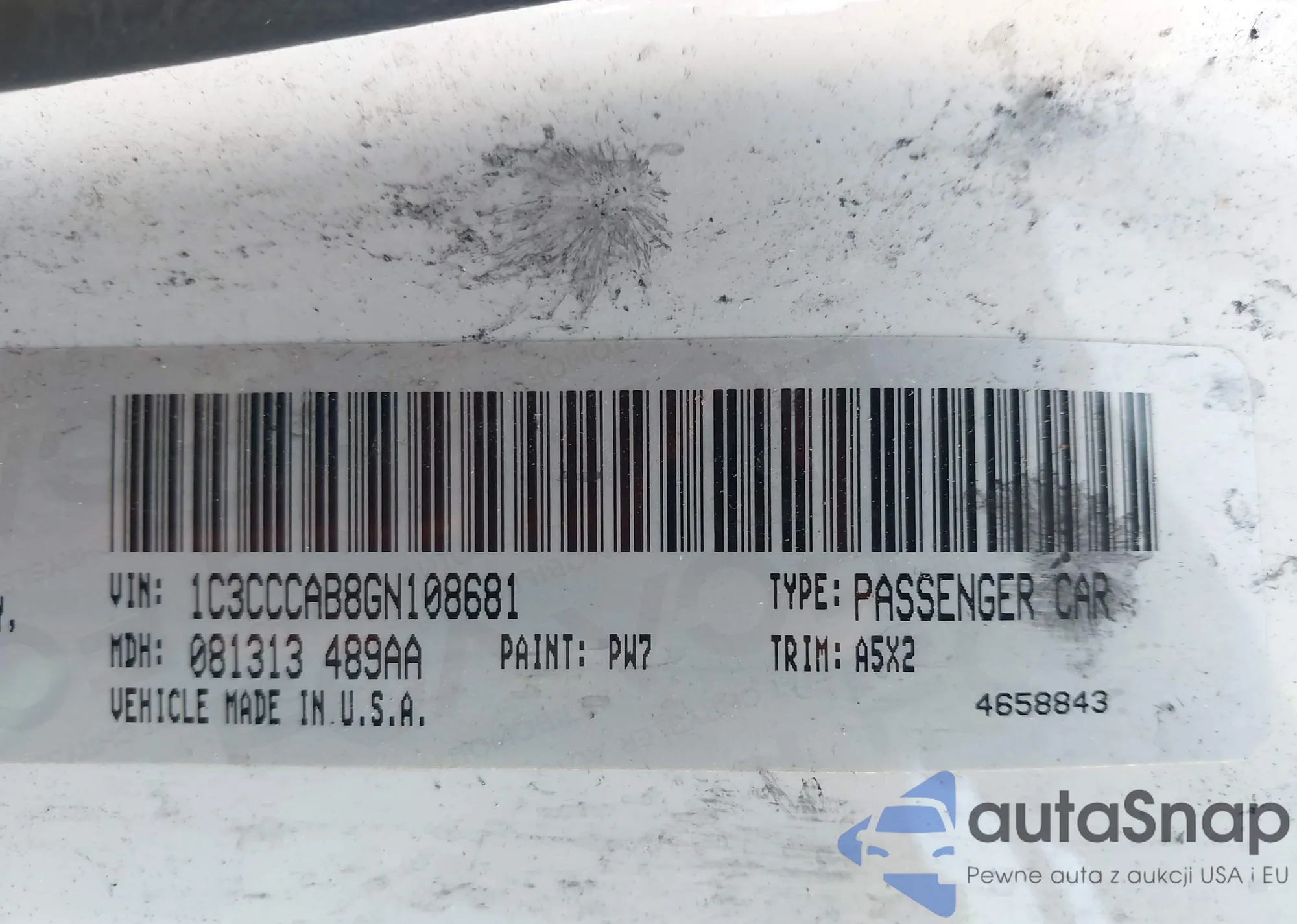 LOT: 43627315 VIN: 1C3CCCAB8GN108681