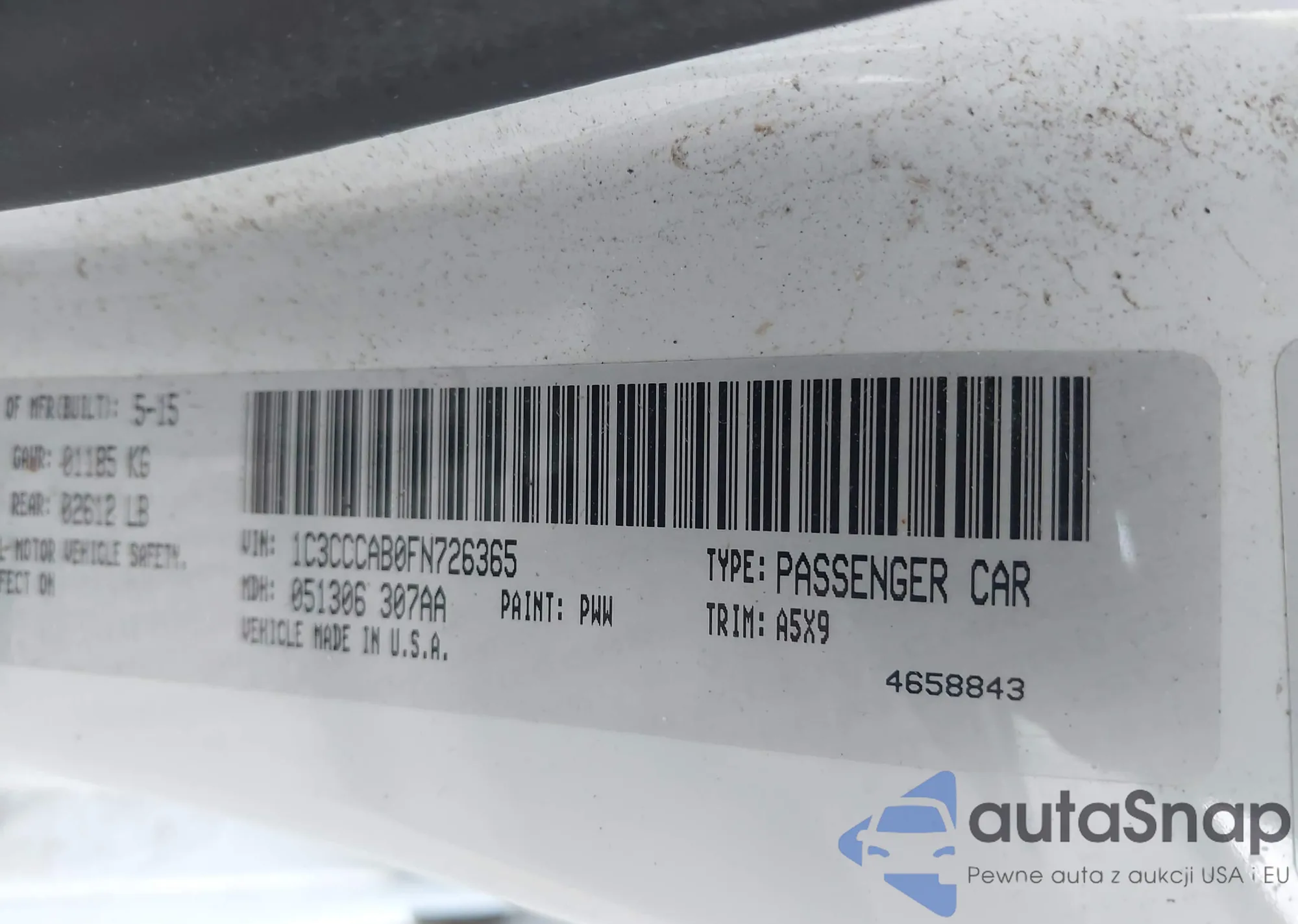 LOT: 43654355 VIN: 1C3CCCAB7FN568185