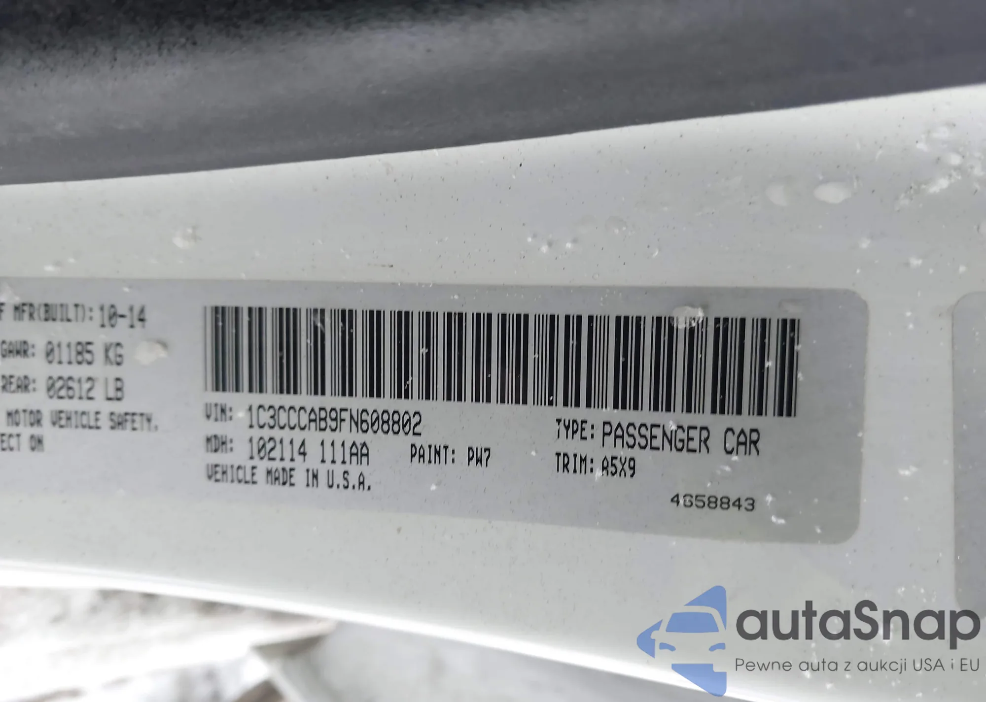 LOT: 44158477 VIN: 1C3CCCAB9FN608802