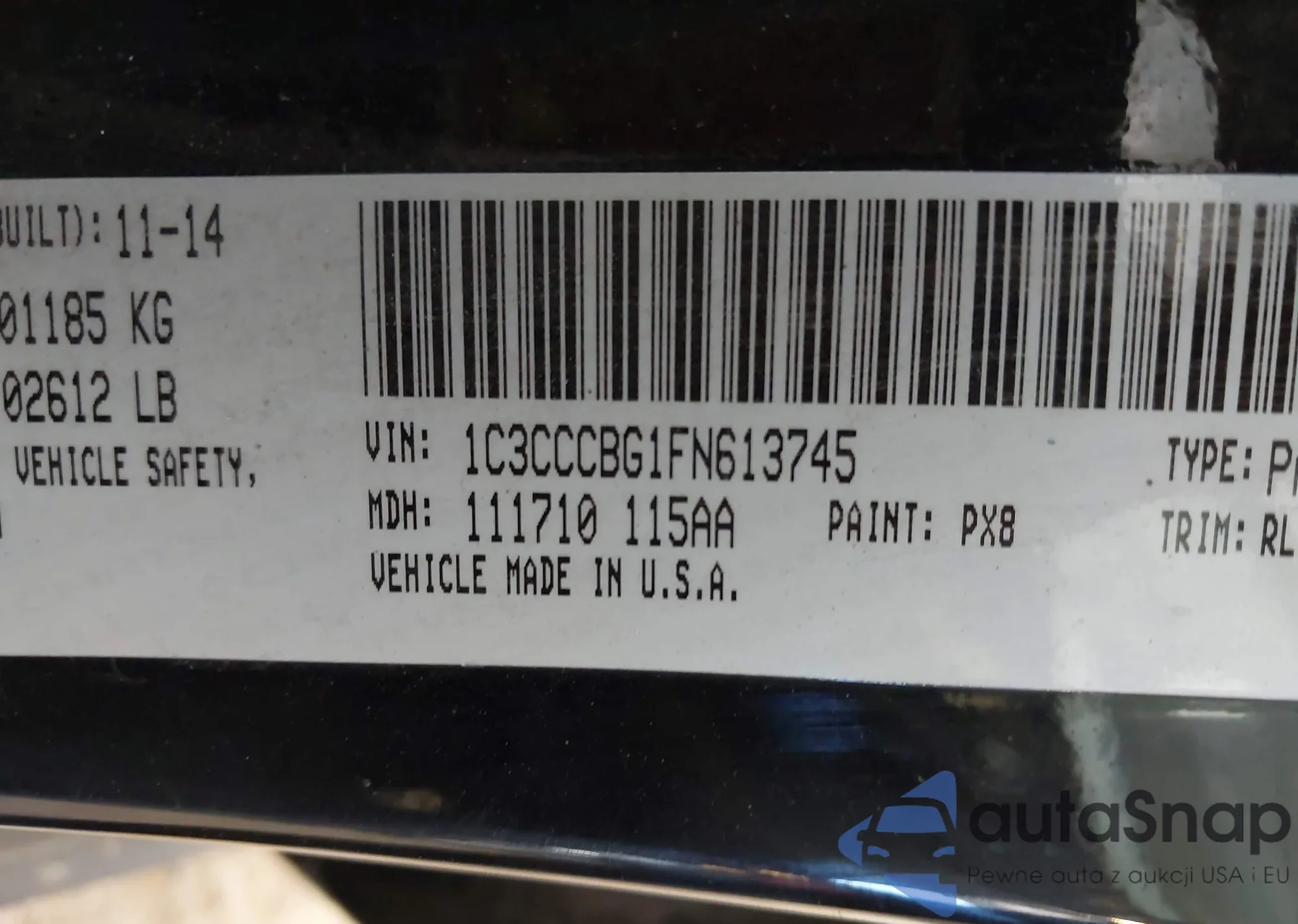 LOT: 43159372 VIN: 1C3CCCBG1FN613745
