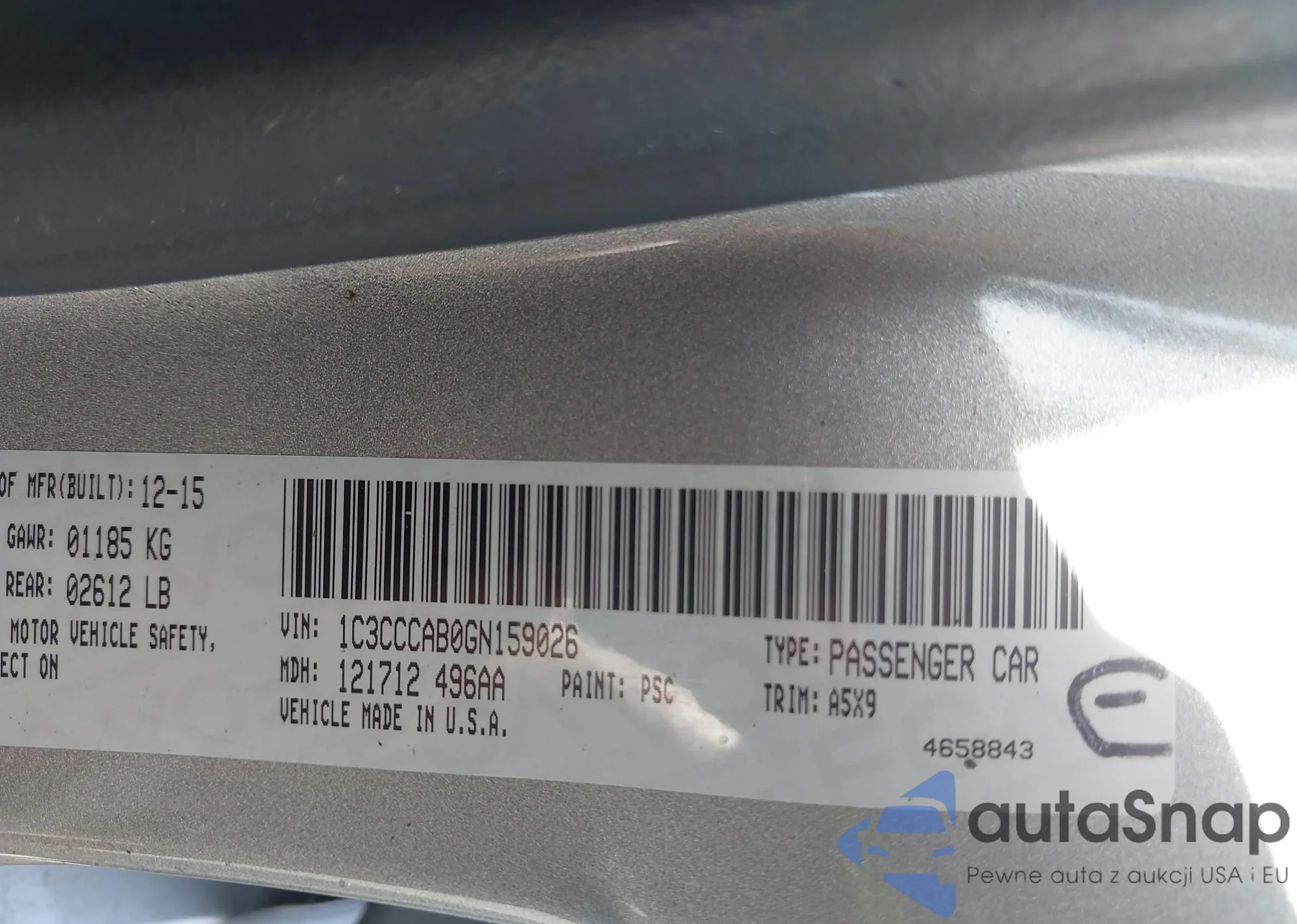 LOT: 42808312 VIN: 1C3CCCAB0GN159026