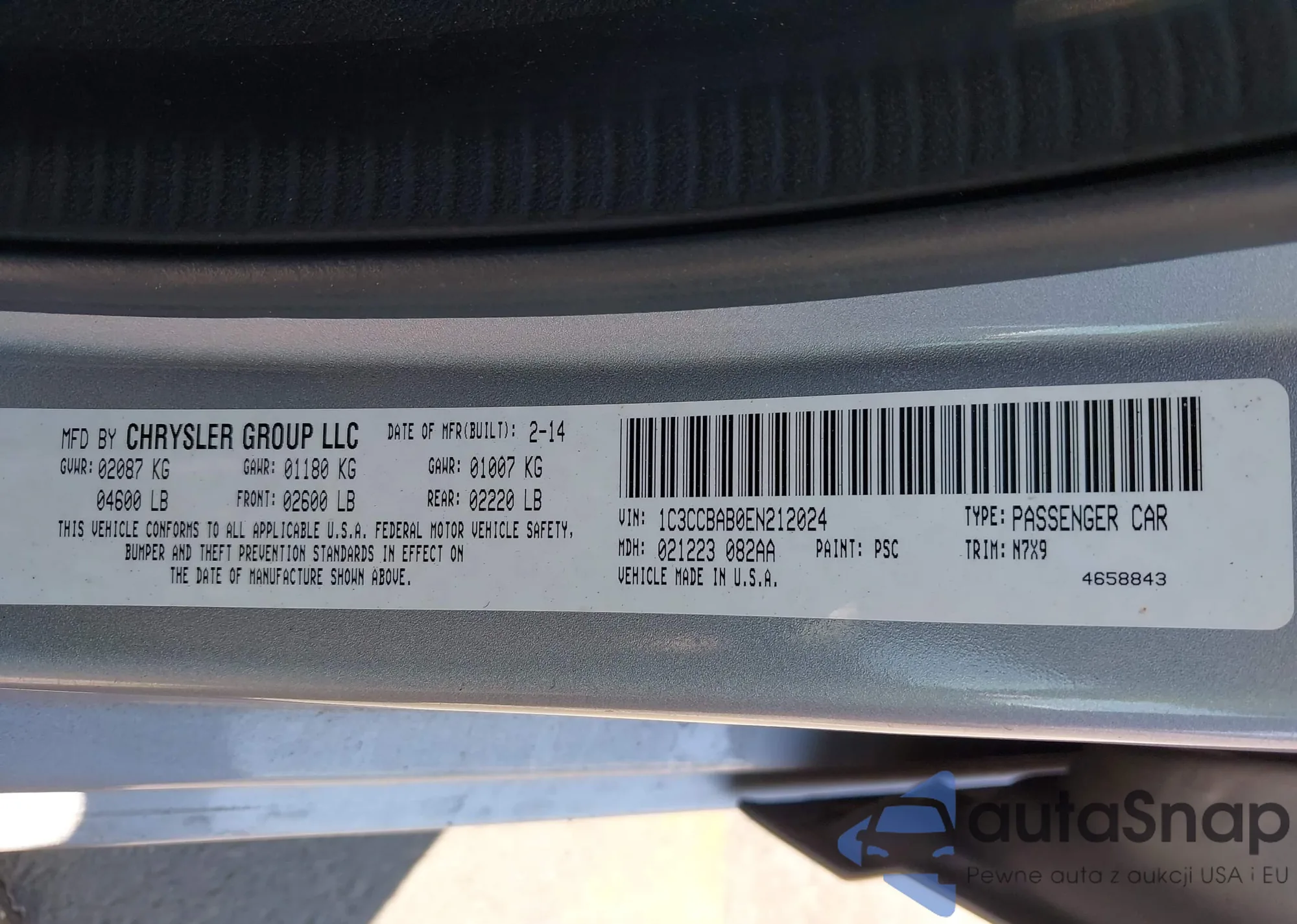 LOT: 43279033 VIN: 1C3CCBAB0EN212024