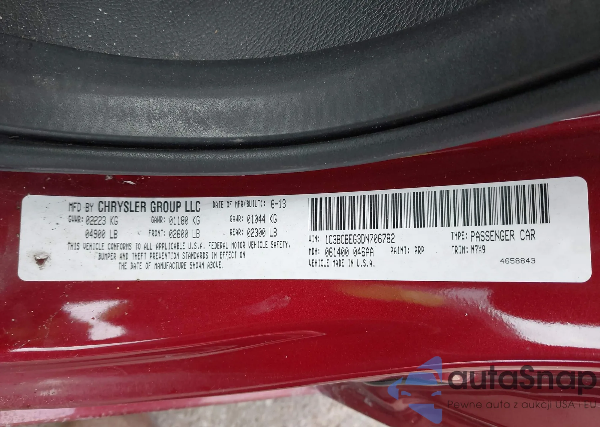 • VIN 1C3BCBEG3DN706782