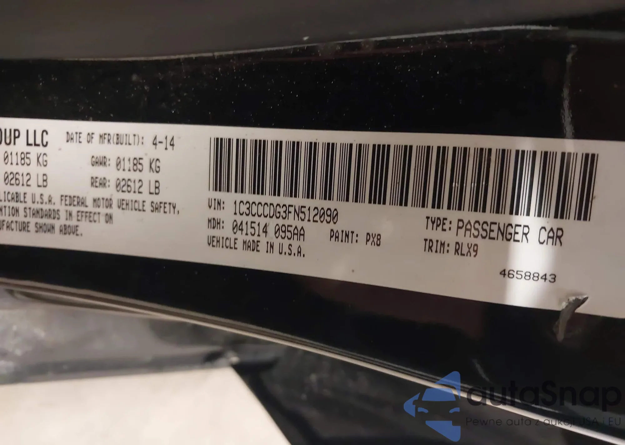 LOT: 44192620 VIN: 1C3CCCDG3FN512090