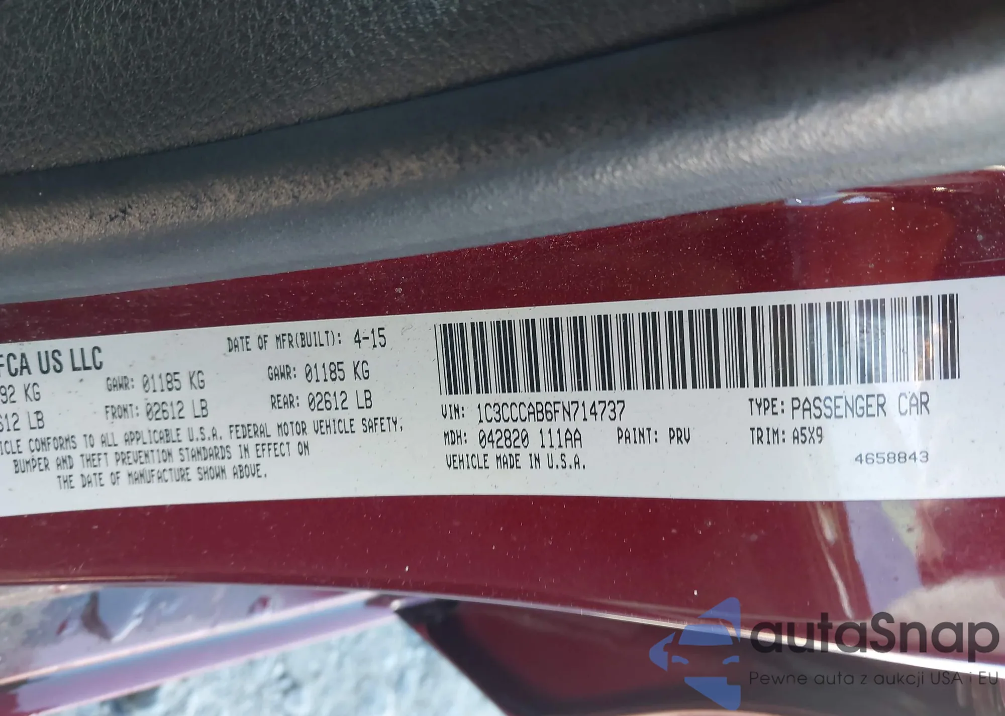 • VIN 1C3CCCAB7FN702158