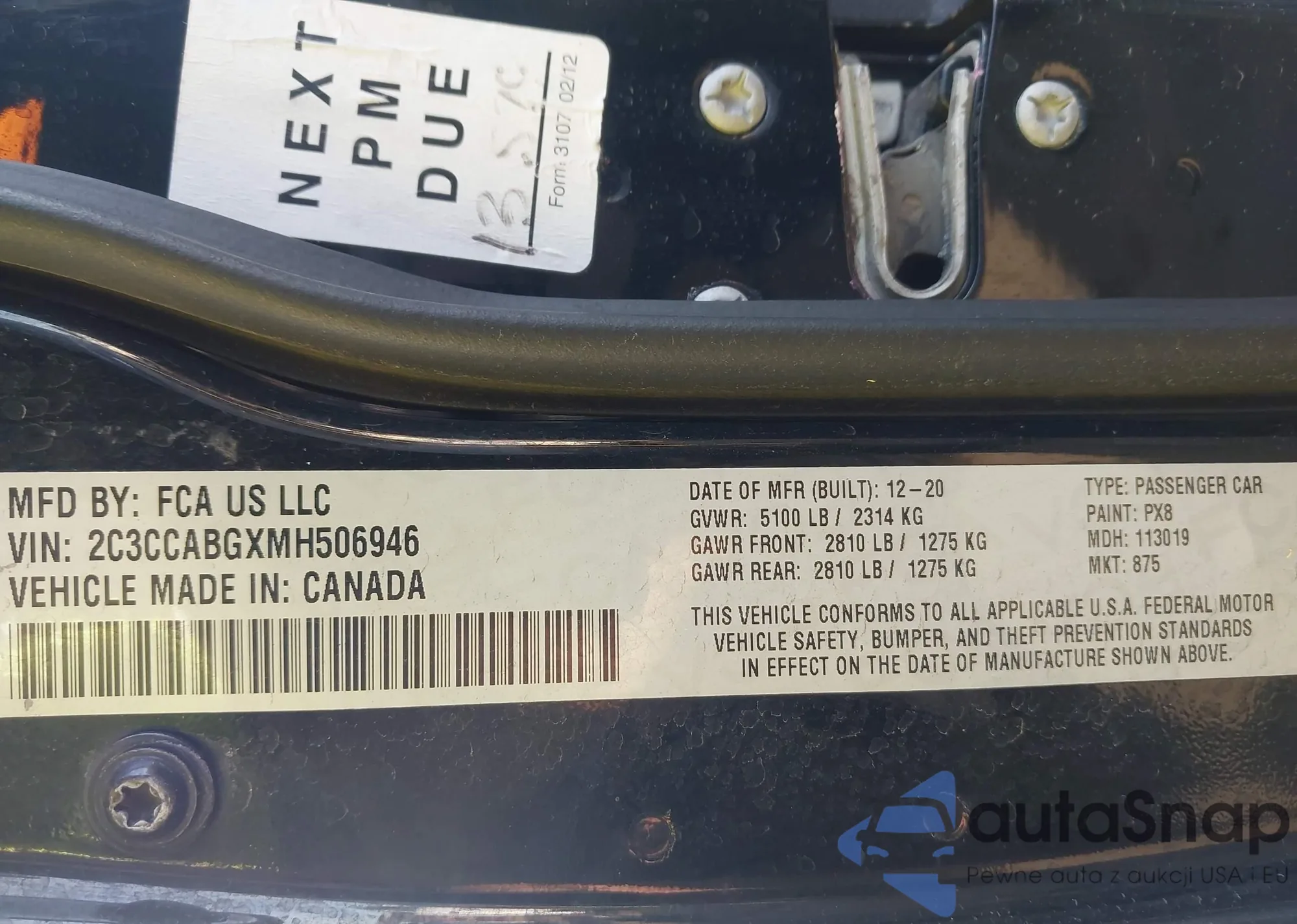 LOT: 44006909 VIN: 2C3CCABGXMH506946