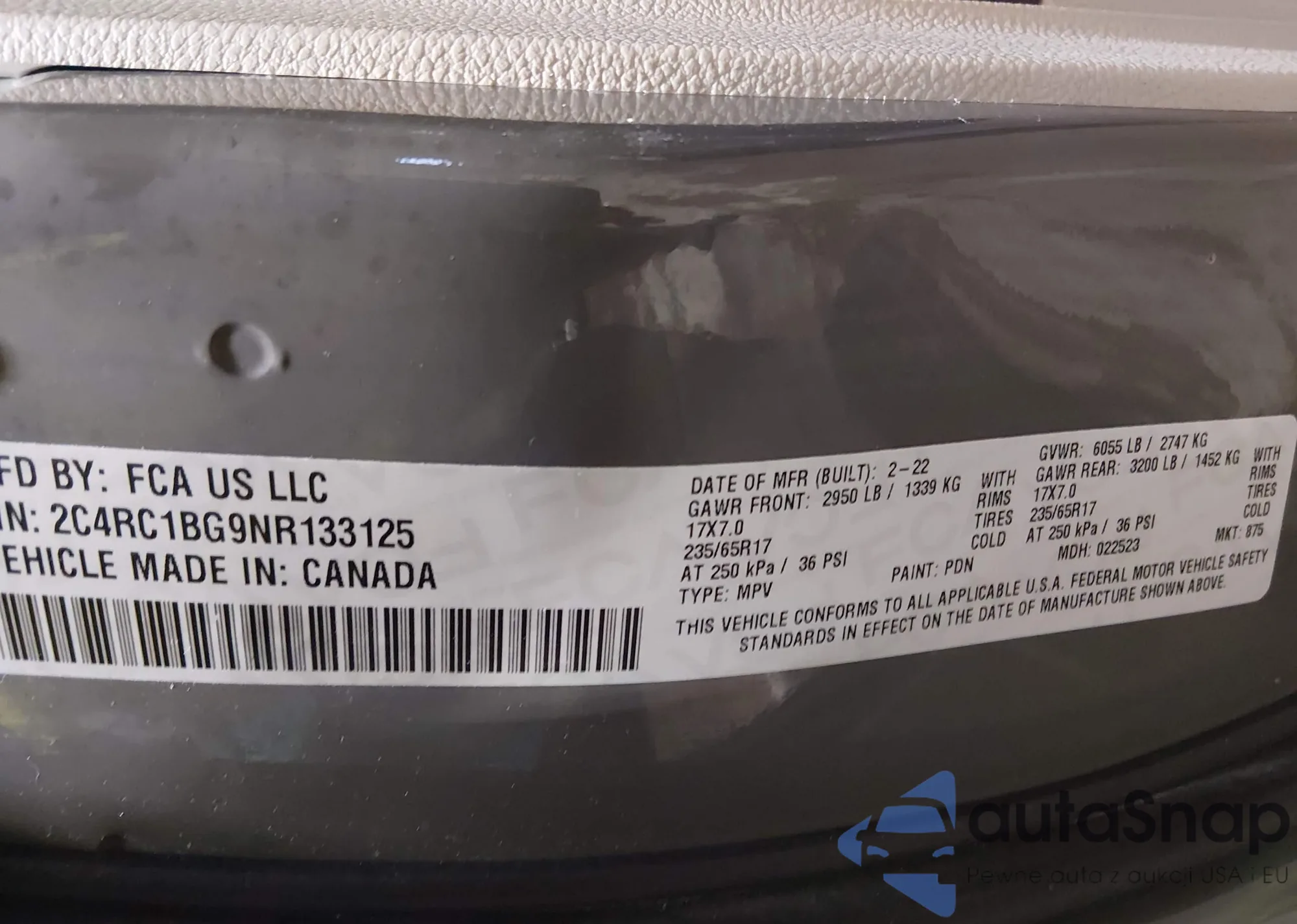• VIN 2C4RC1BG9NR133125