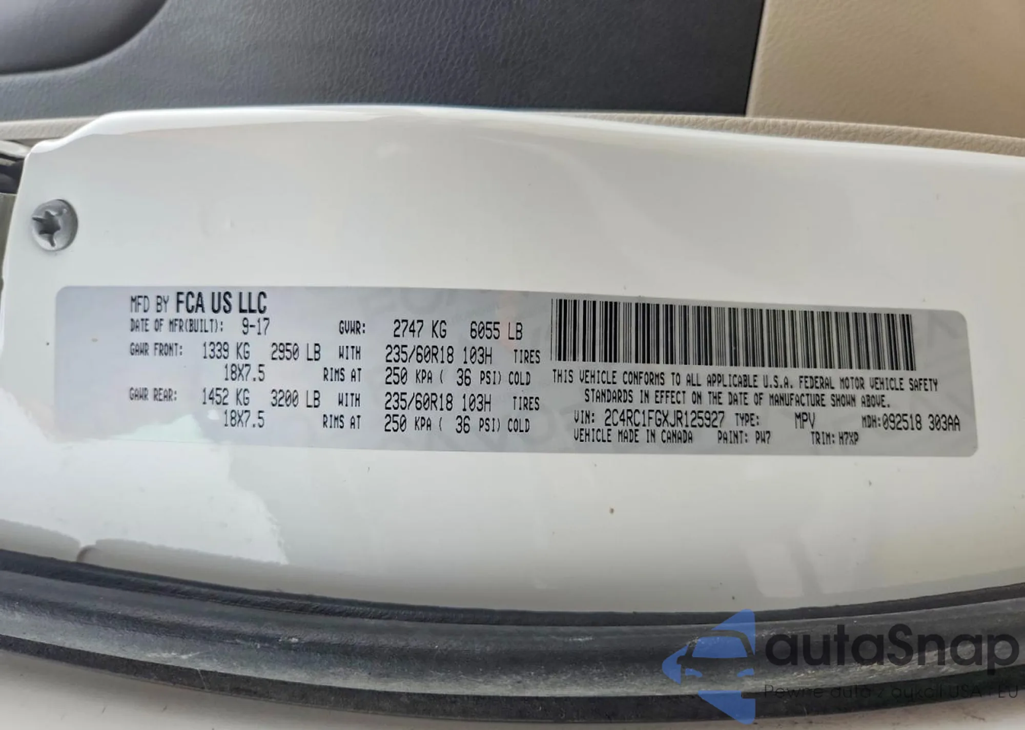 Kup Chrysler Pacifica RU z USA