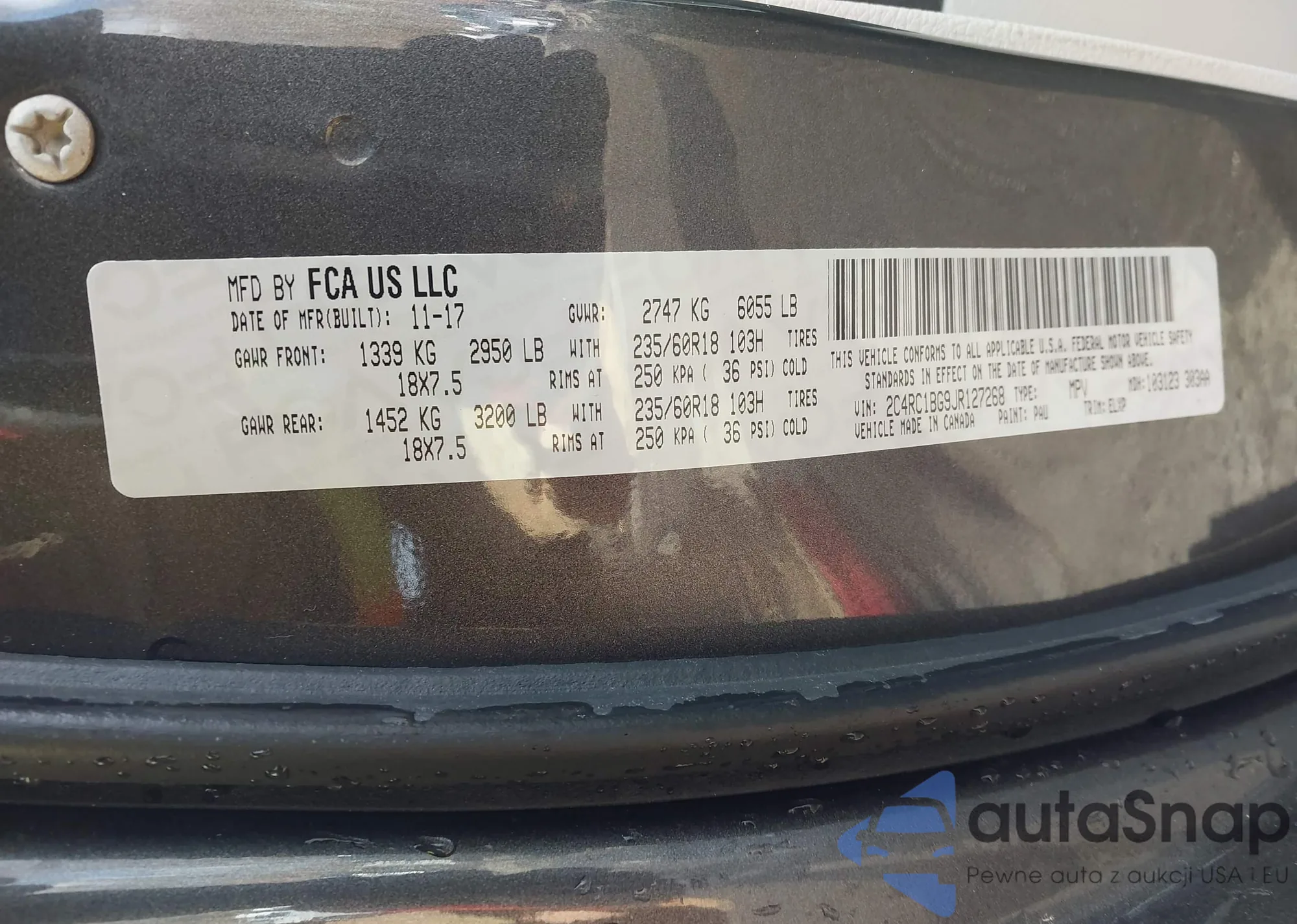 • VIN 2C4RC1BG9JR127268