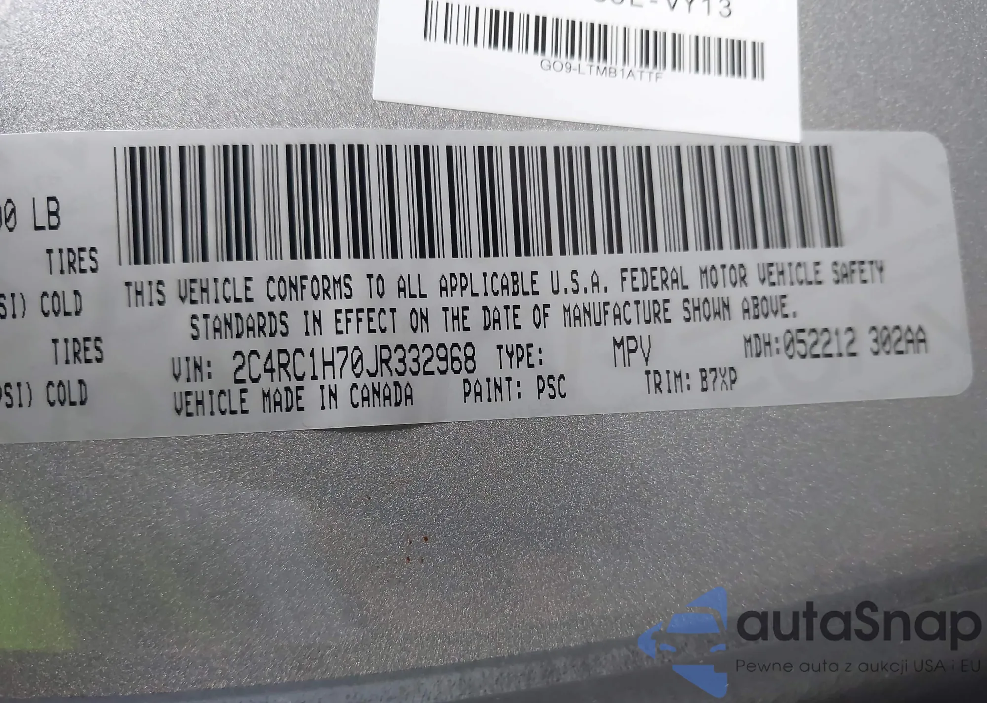 • VIN 2C4RC1H70JR332968