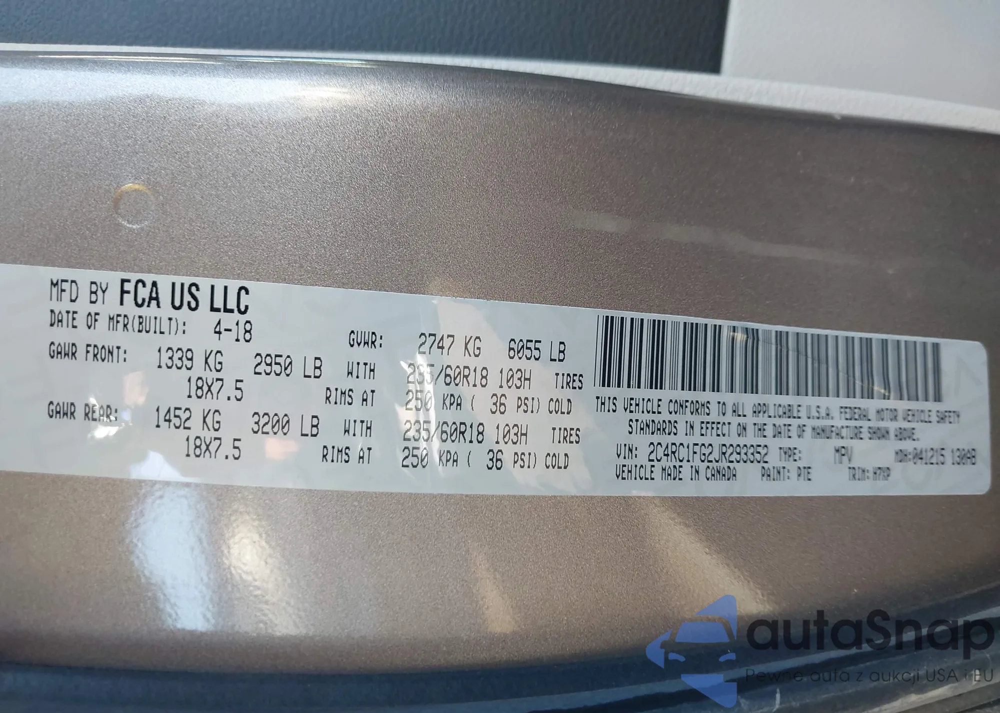 • VIN 2C4RC1FG2JR293352