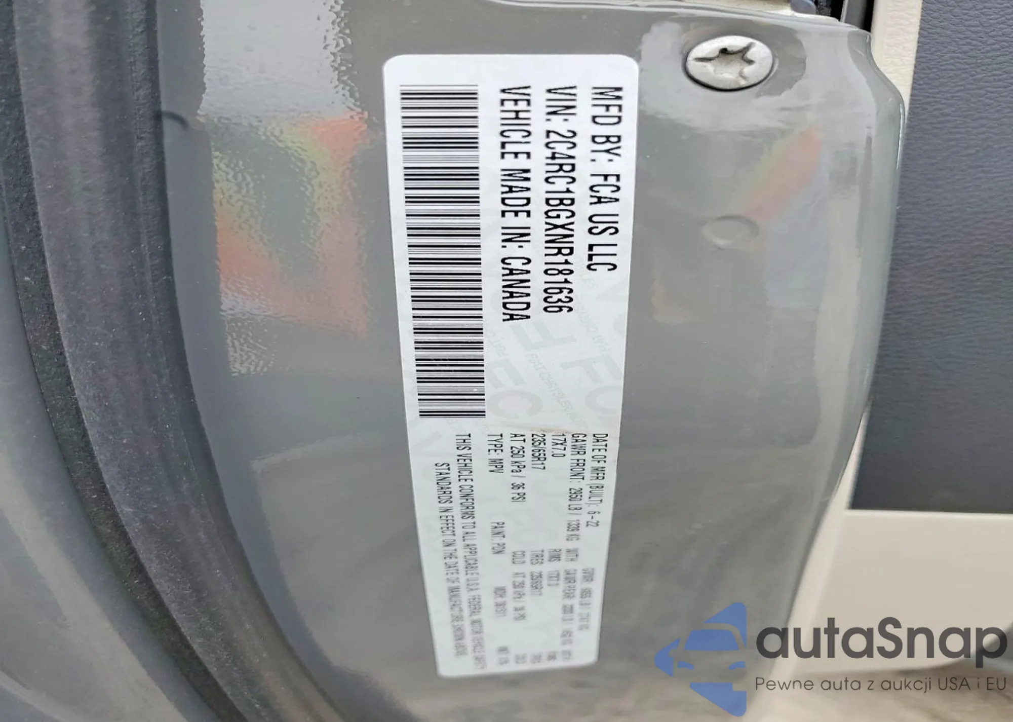 • VIN 2C4RC1BGXNR181636