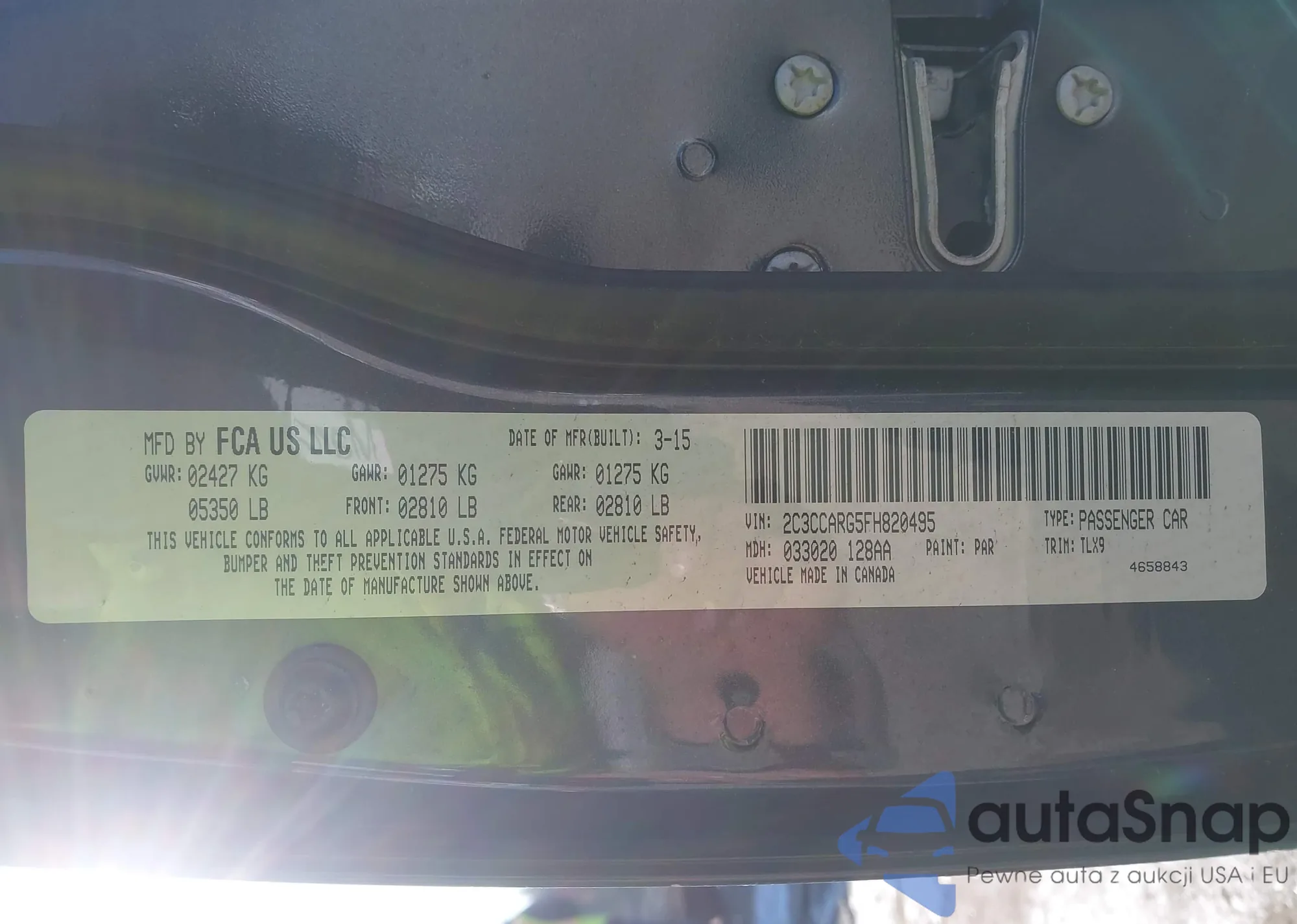 • VIN 2C3CCARG5FH820495