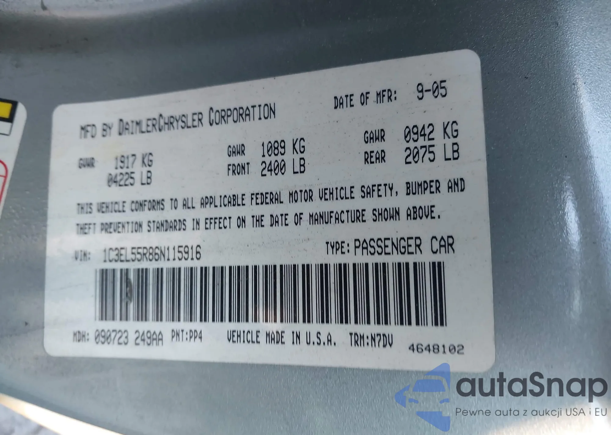 LOT: 44617536 VIN: 1C3EL55R86N115916