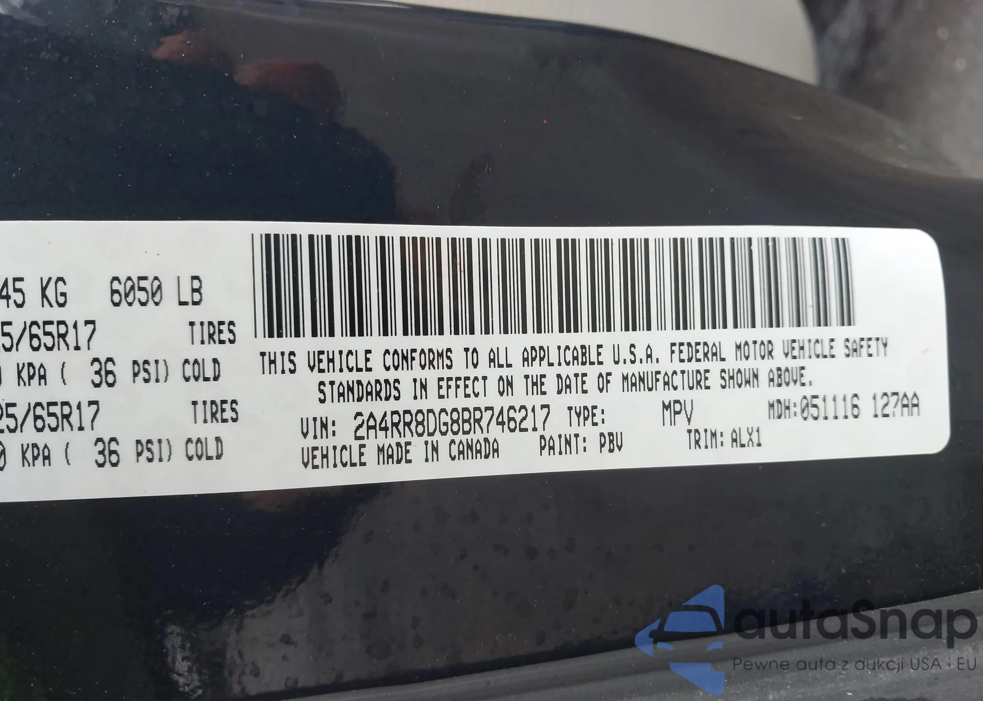 • VIN 2A4RR8DG8BR746217