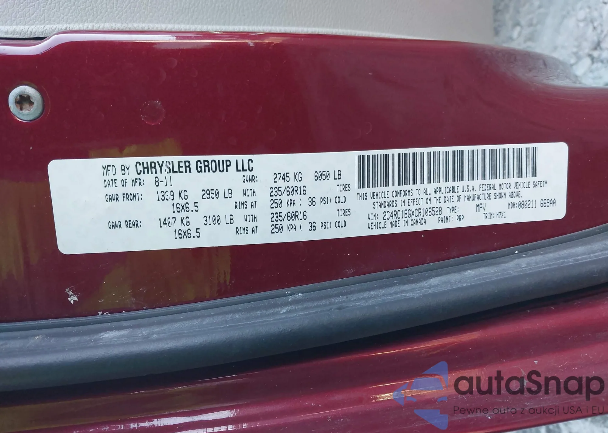 • VIN 2C4RC1BGXCR106528