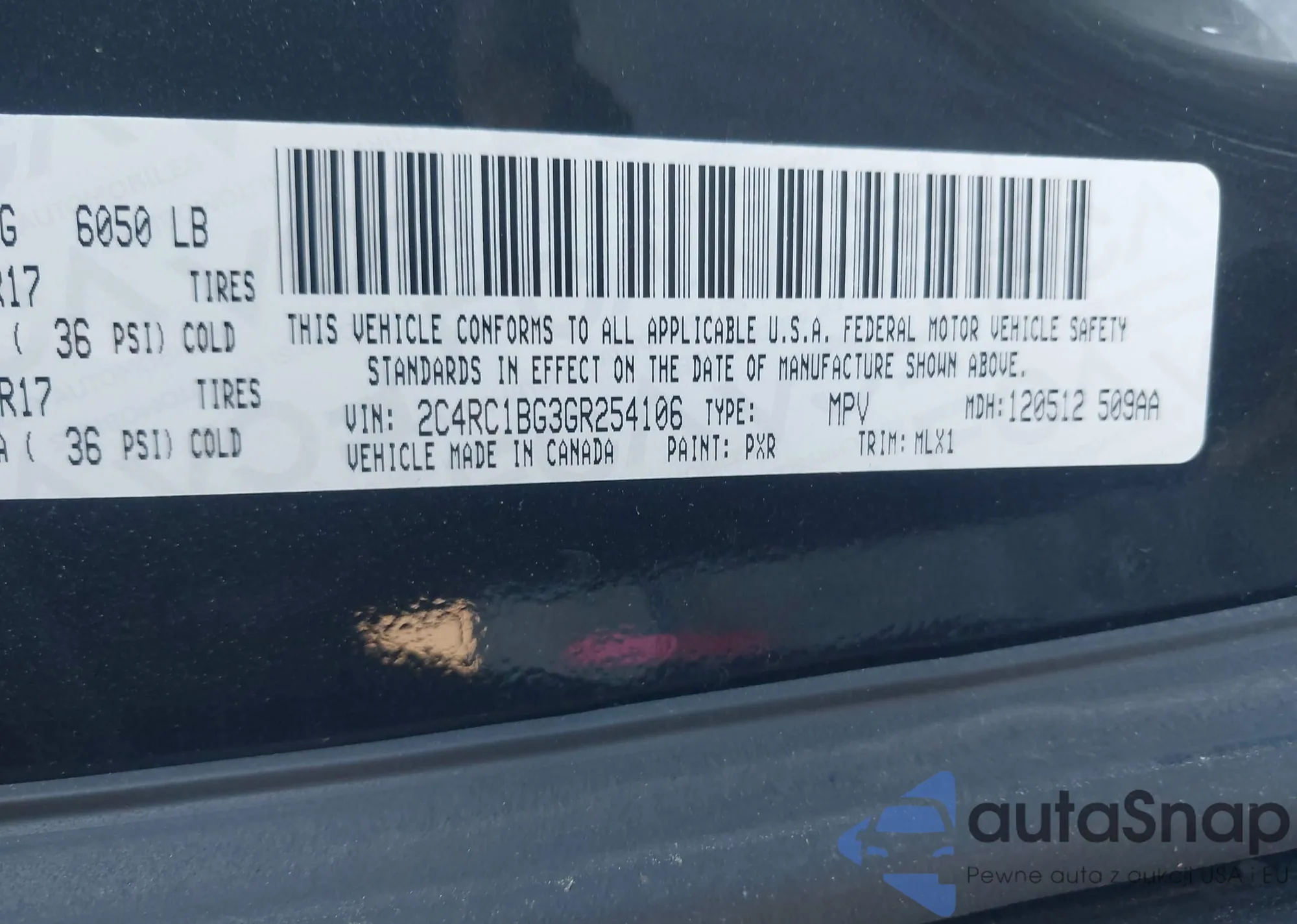 • VIN 2C4RC1BG3GR254106