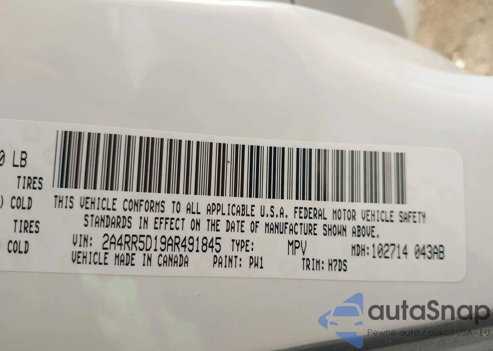• VIN 2A4RR5D19AR491845