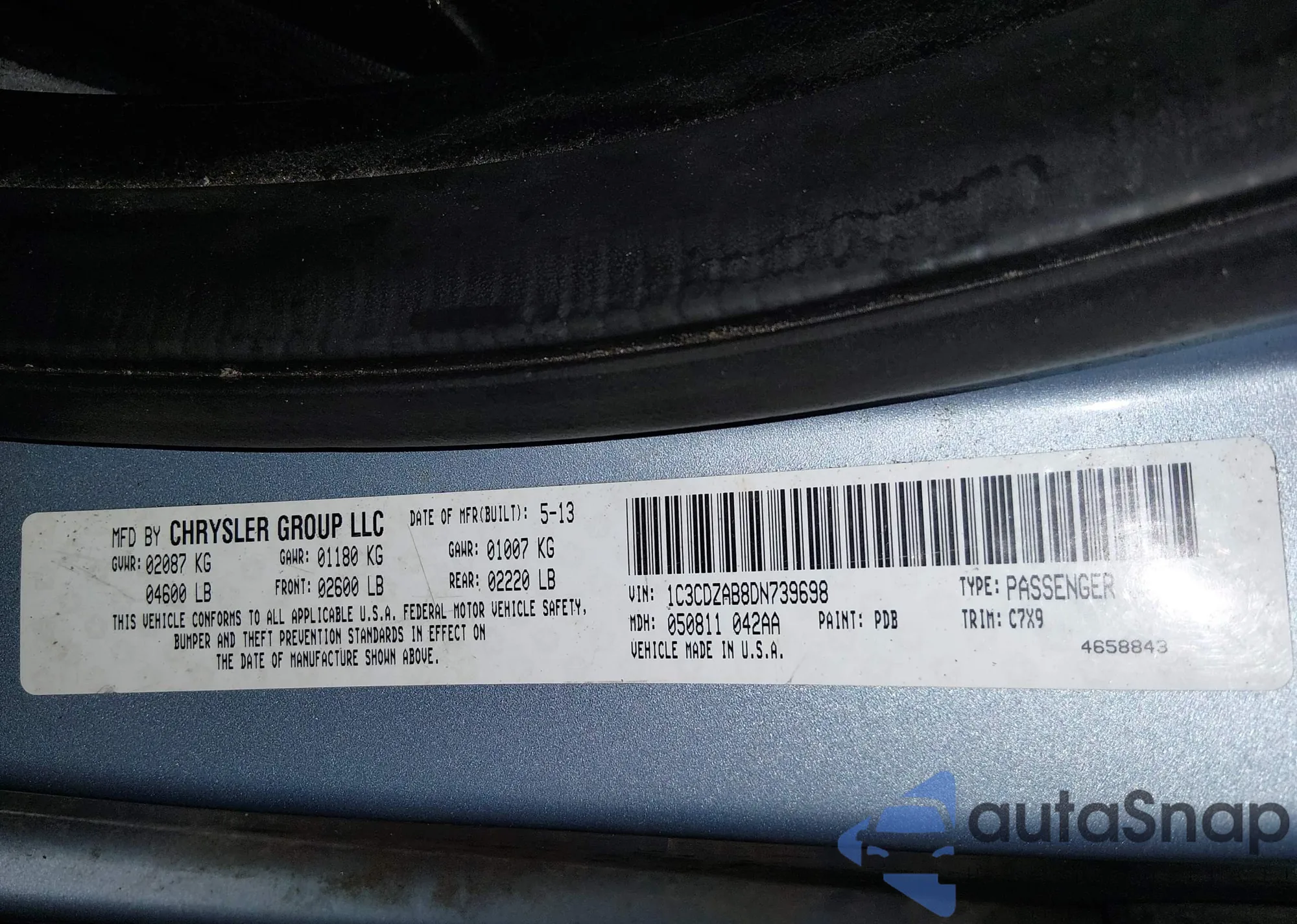 • VIN 1C3CDZAB9DN687899