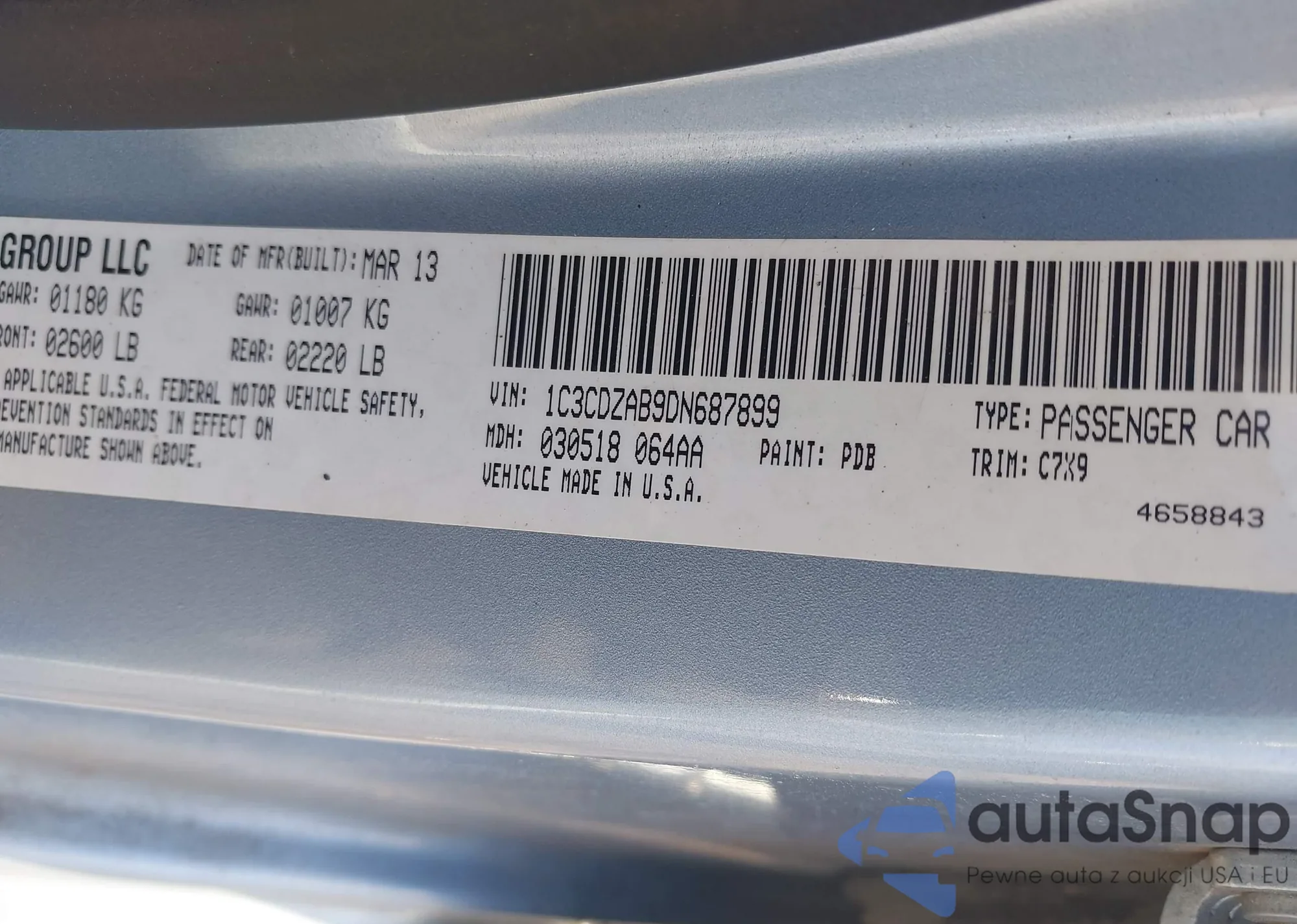 LOT: 44024988 VIN: 1C3CDZAB9DN687899