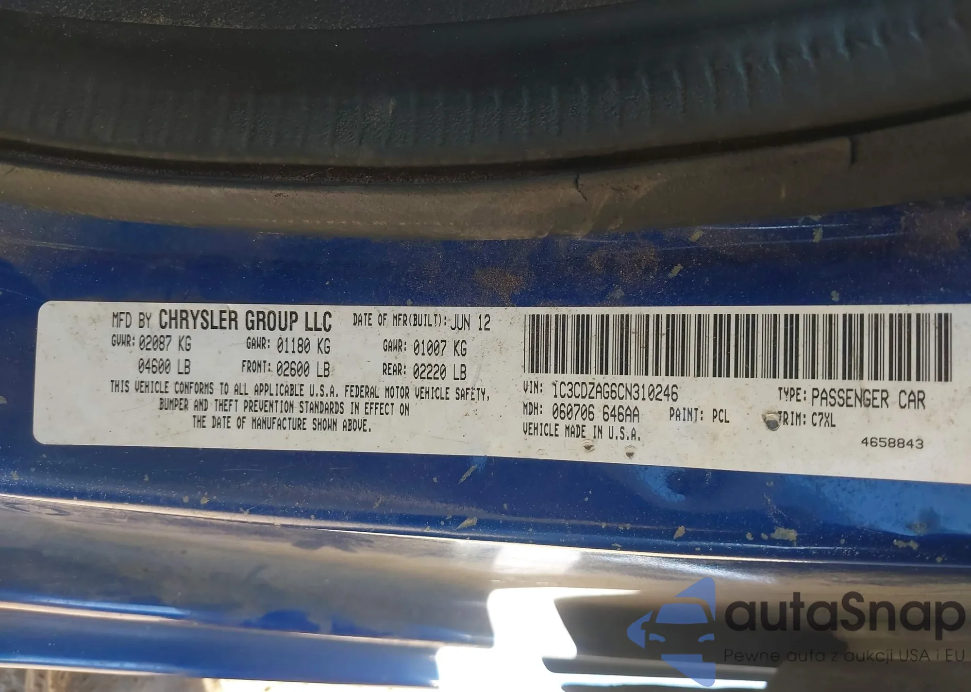 LOT: 44052365 VIN: 1C3CDZAG6CN310246