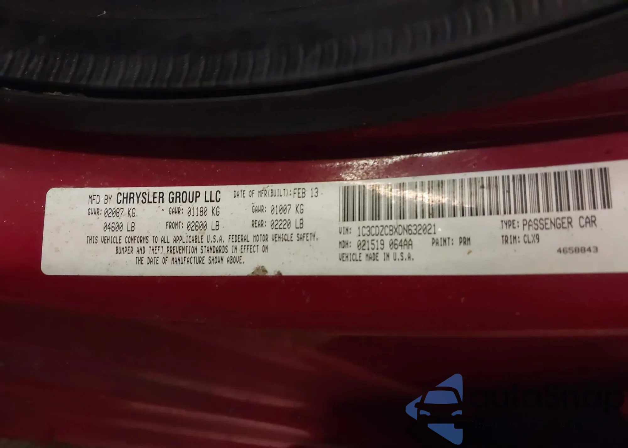 • VIN 1C3CDZCBXDN632021