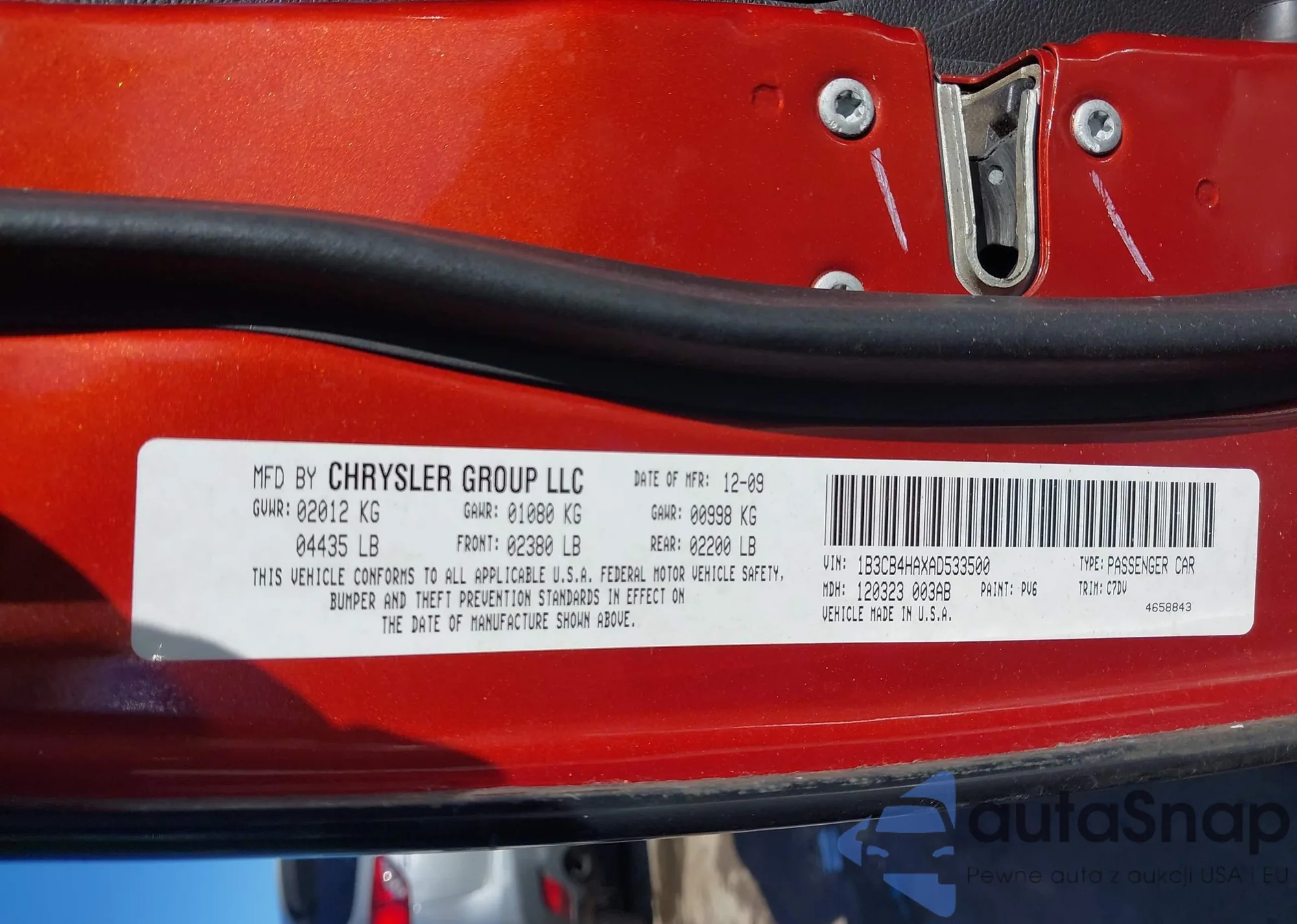 • VIN 1B3CB4HAXAD533500
