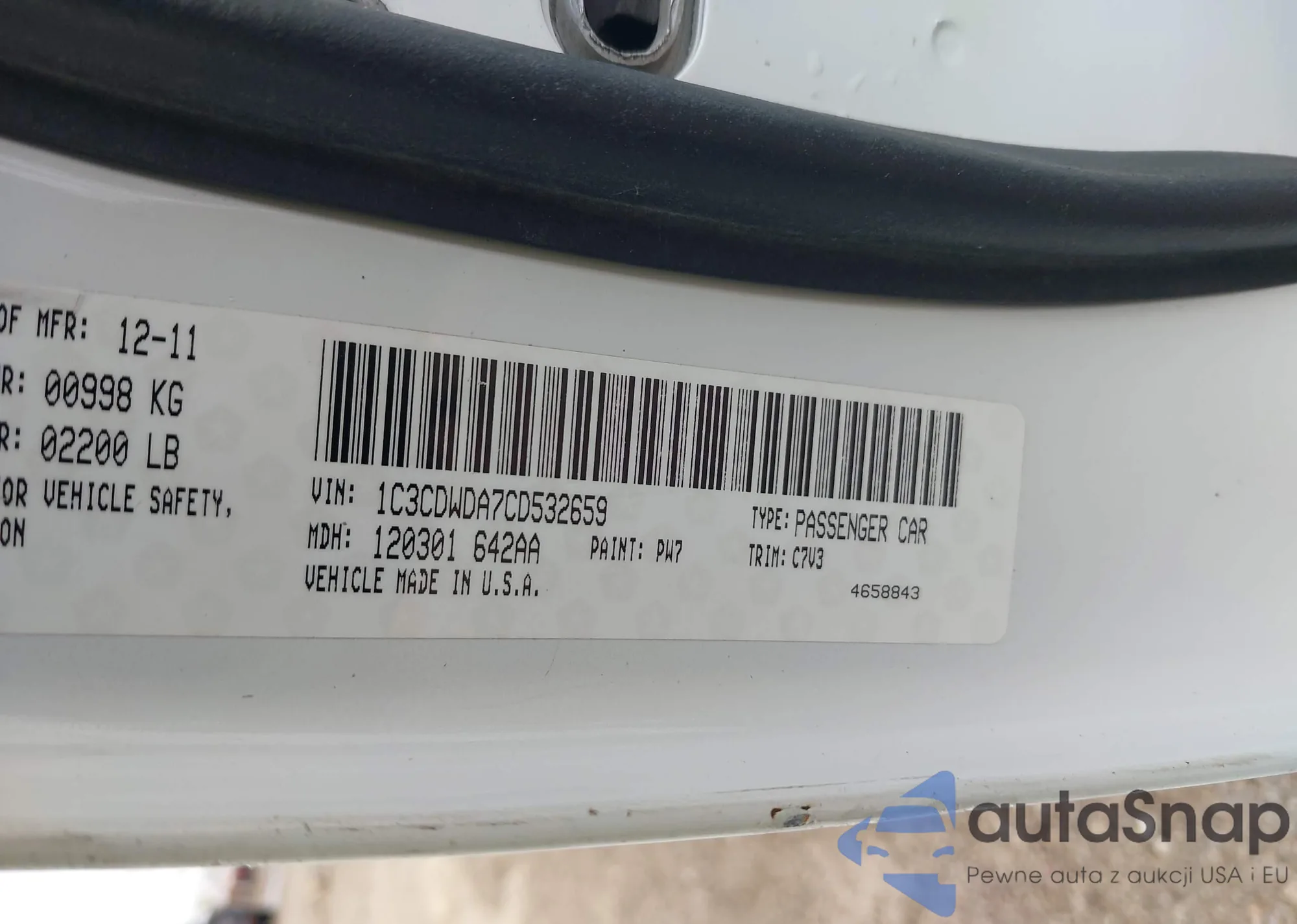 • VIN 1C3CDWDA7CD532659