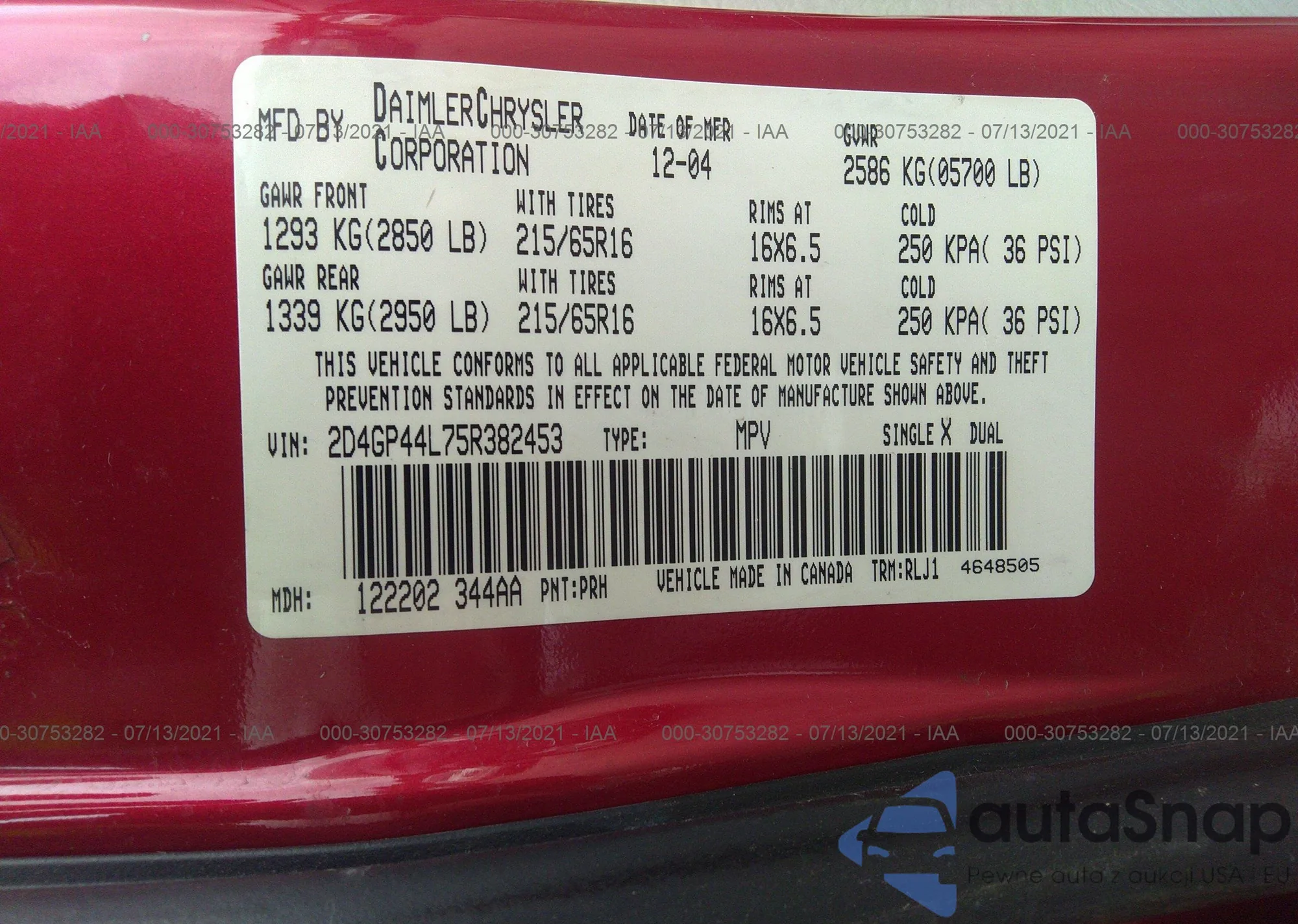 • VIN 2D4GP44L75R382453