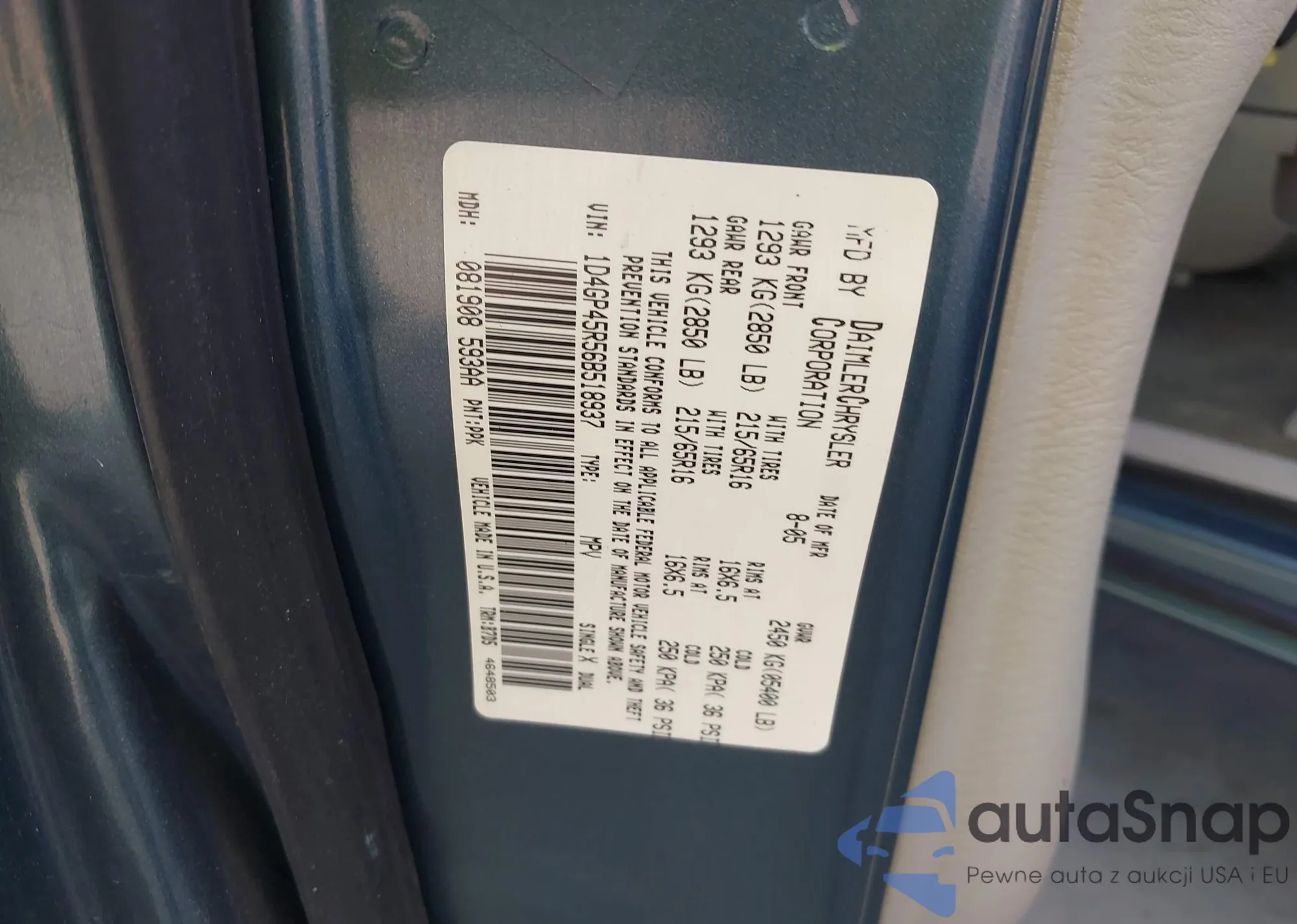 LOT: 31996836 VIN: 1D4GP25B65B432302