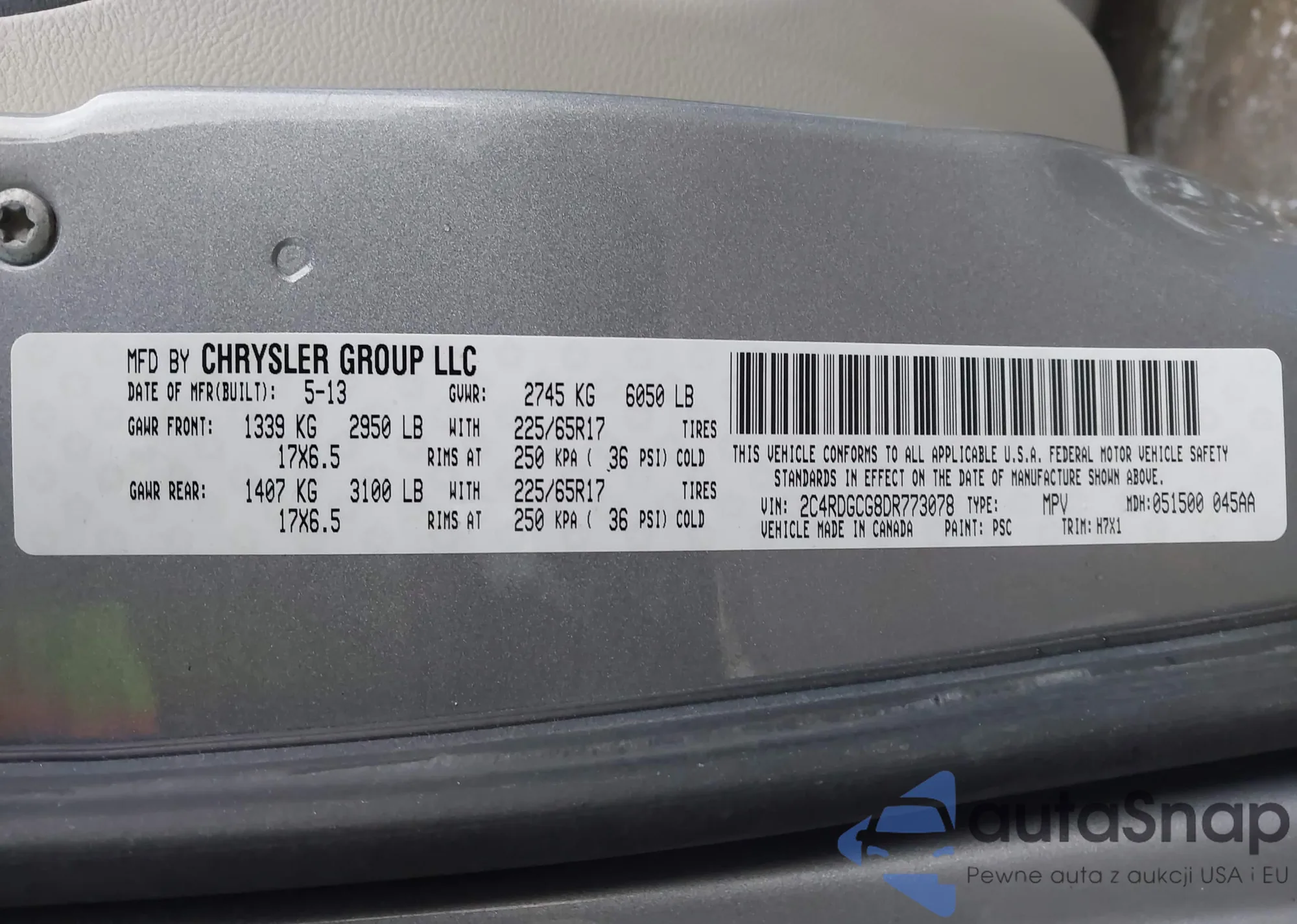 • VIN 2C4RDGCG8DR773078