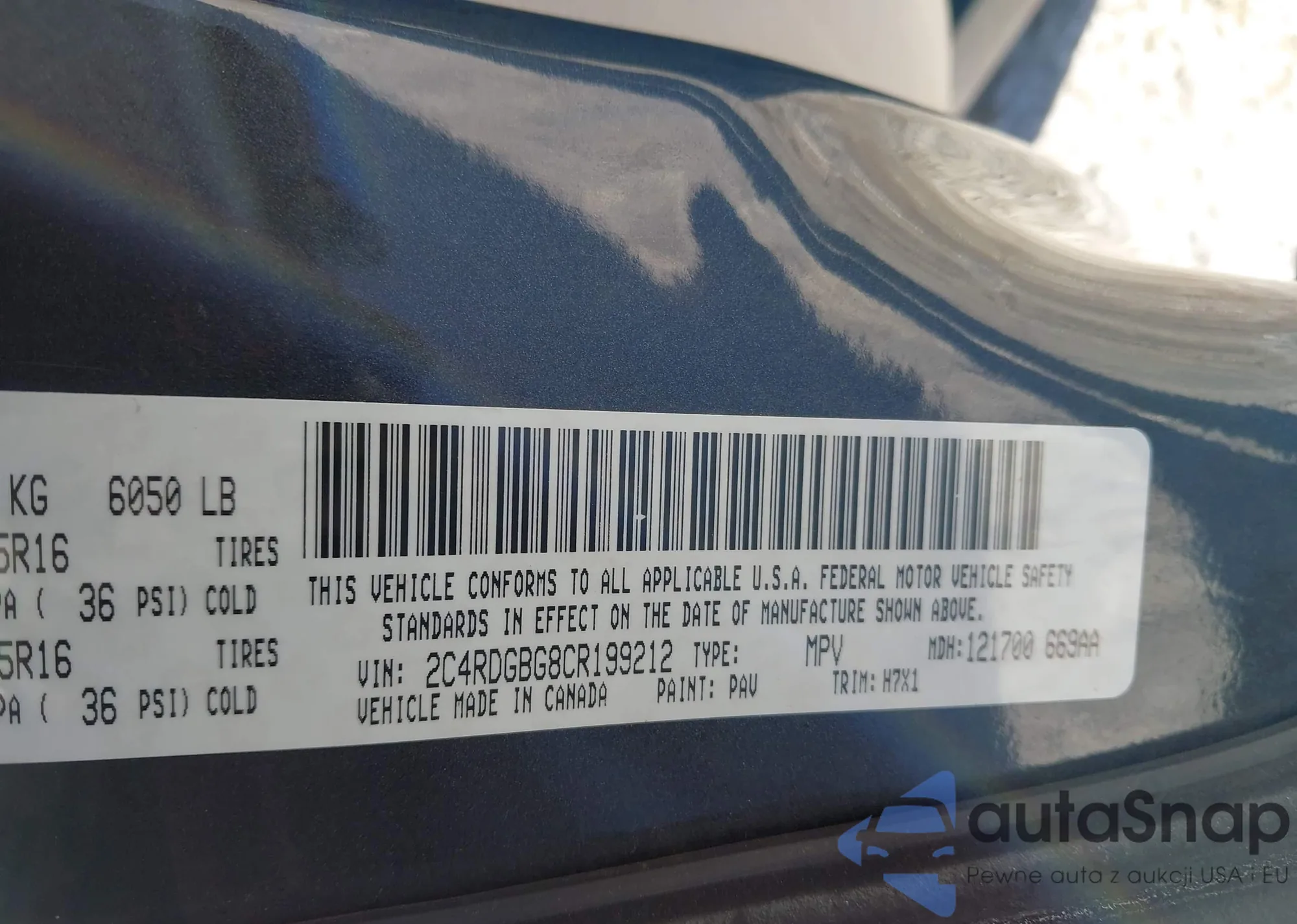 • VIN 2C4RDGBG8CR199212