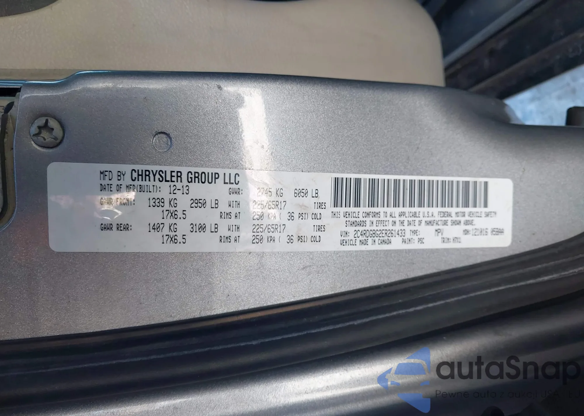 • VIN 2C4RDGBG2ER261433
