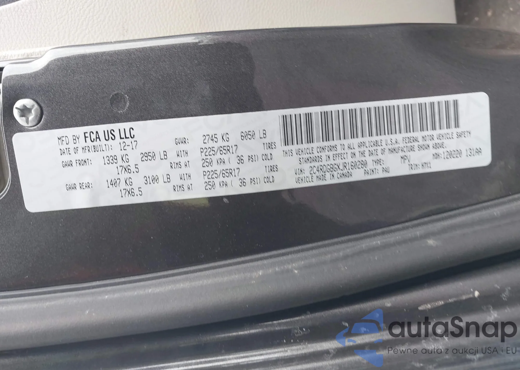 • VIN 2C4RDGCG8JR223228