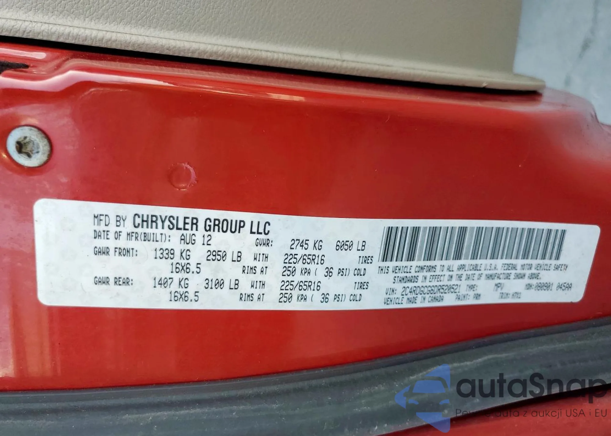 • VIN 2C4RDGCG6DR520521