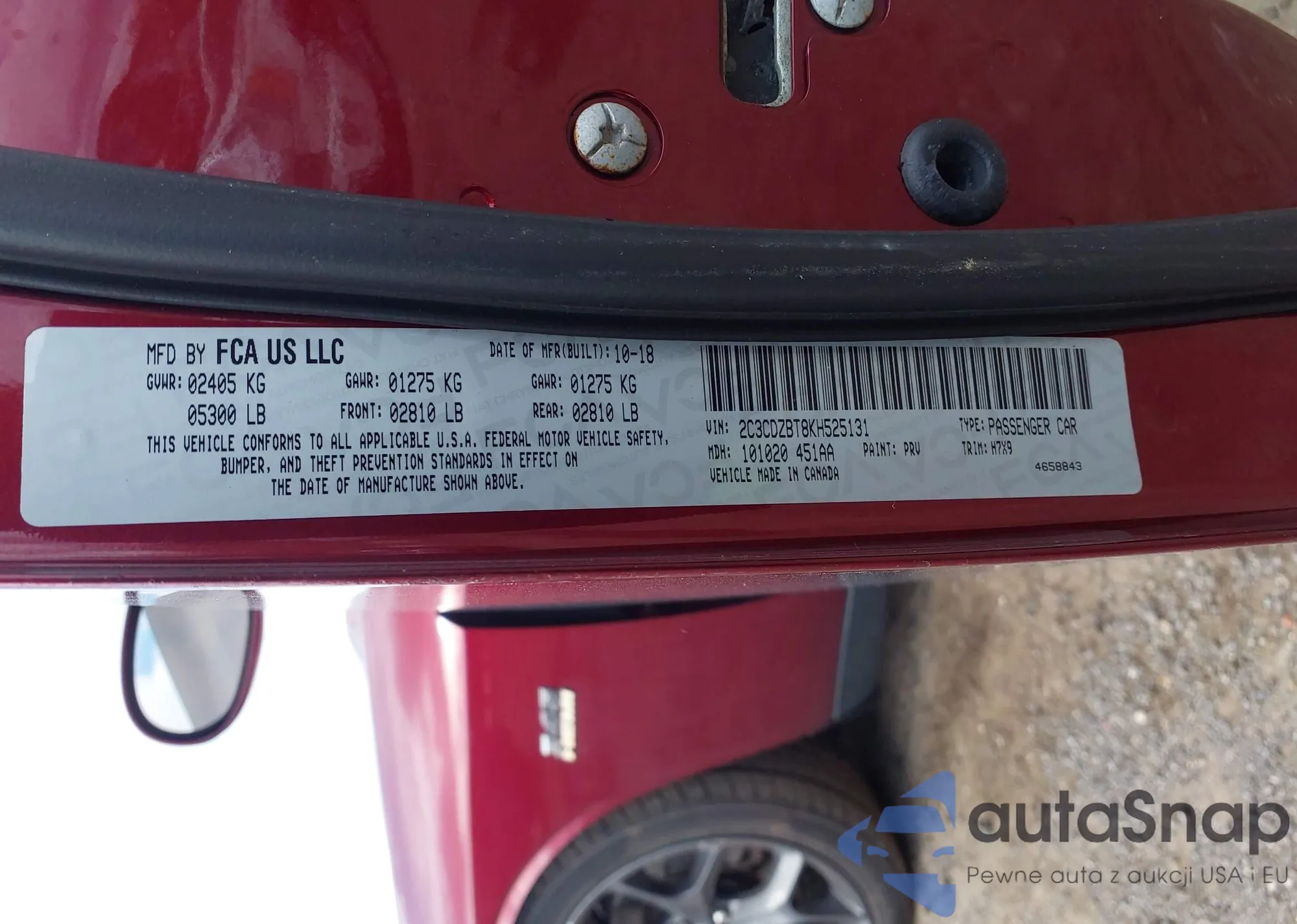 LOT: 43382295 VIN: 2C3CDZBT8KH525131