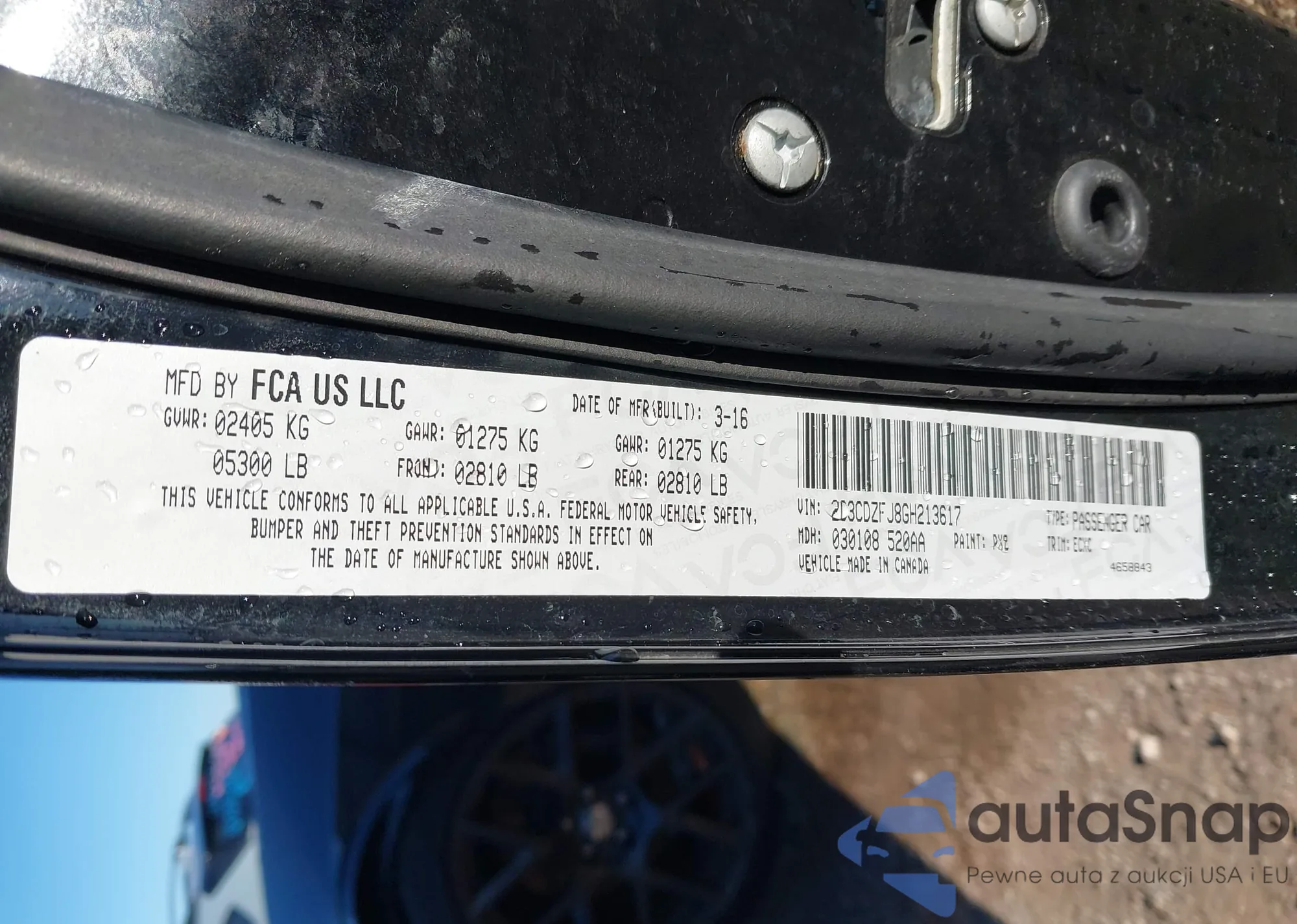 • VIN 2C3CDZFJ8GH213617
