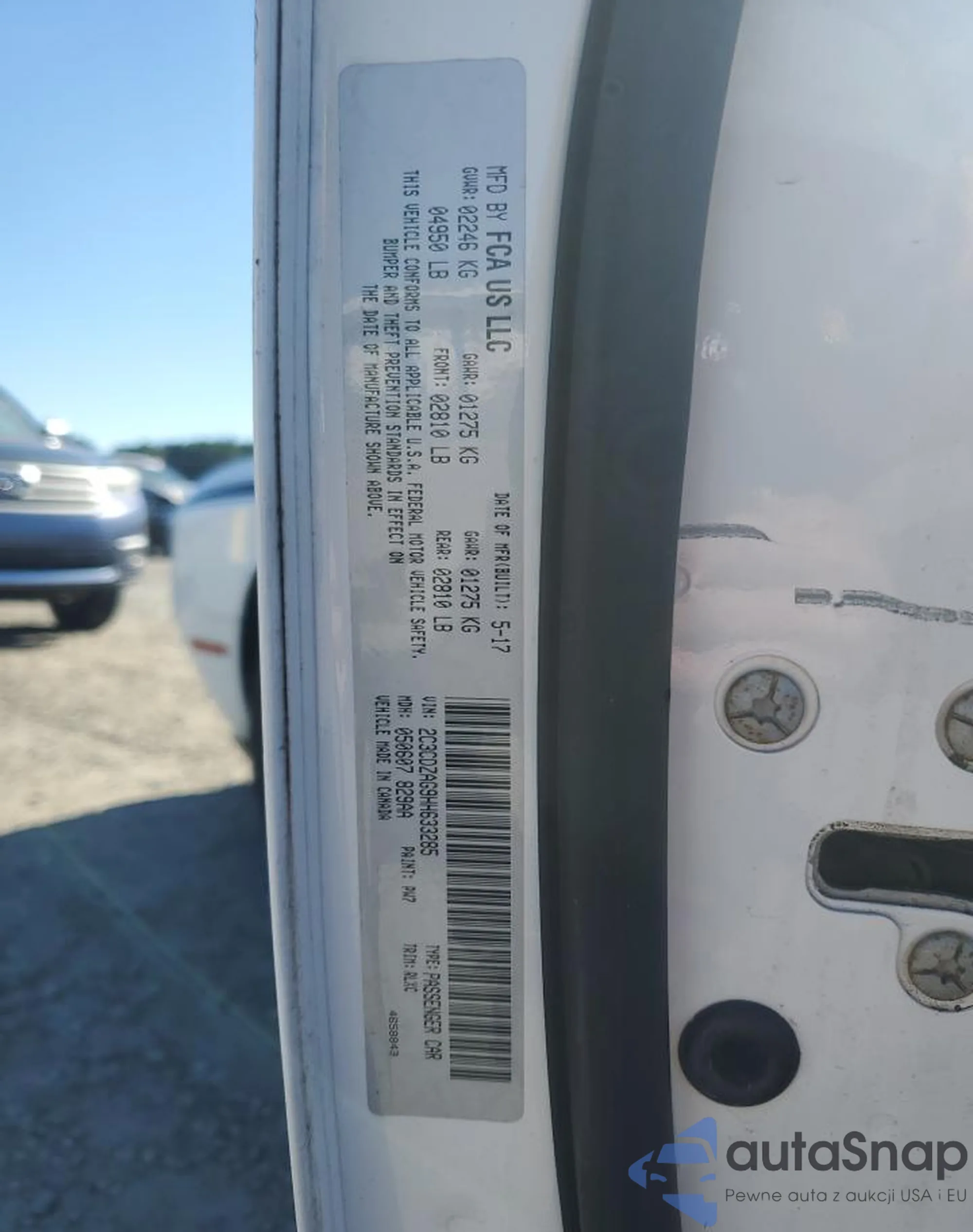 LOT: 90333235 VIN: 2C3CDZAG9HH633285