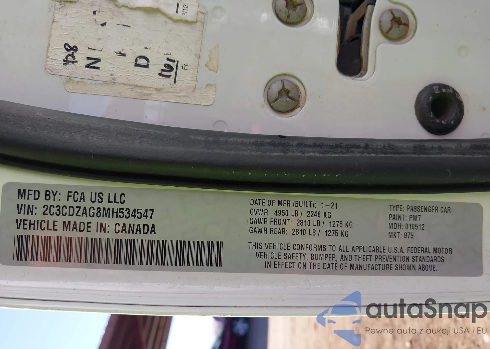 • VIN 2C3CDZAG8MH534547