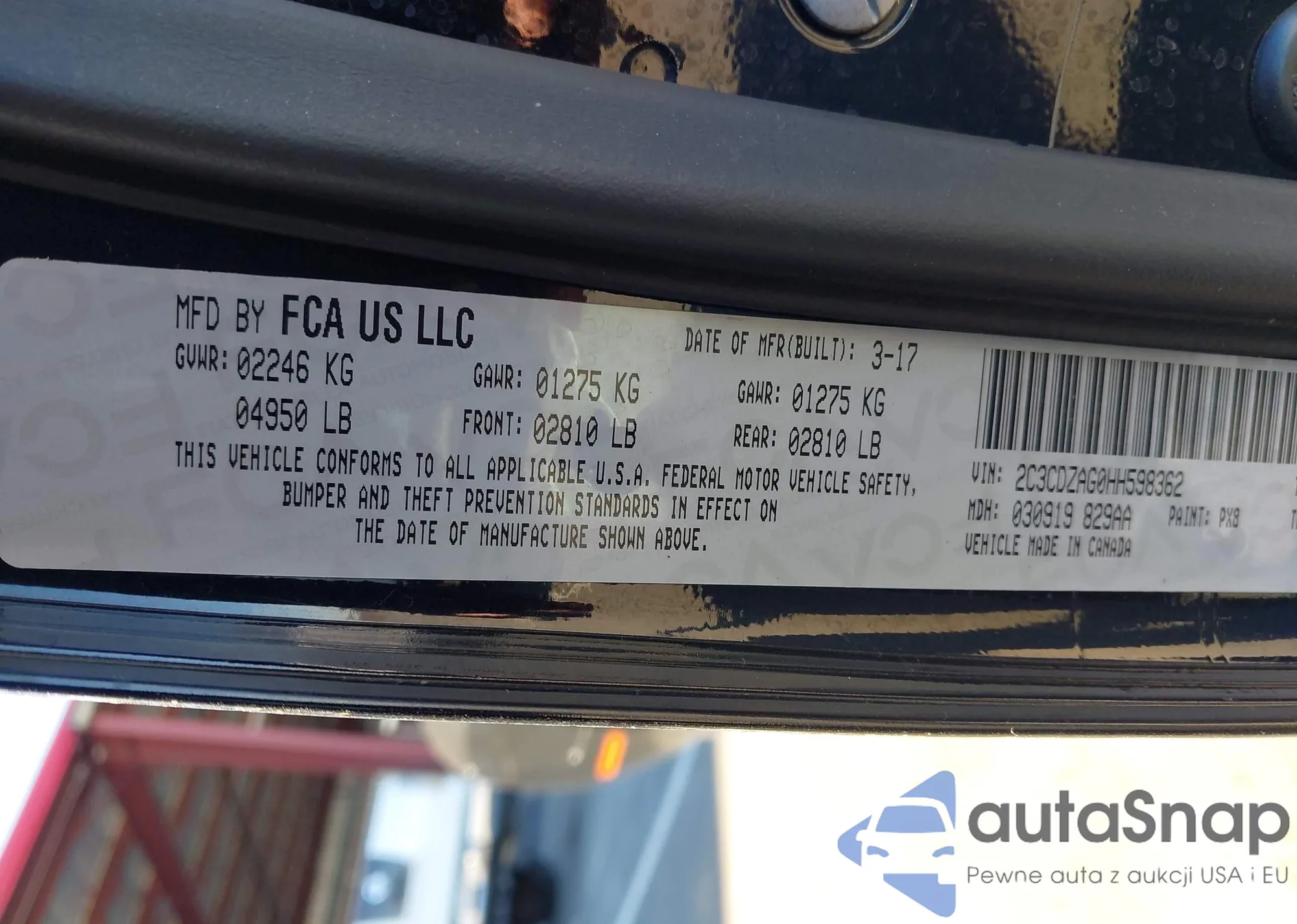 • VIN 2C3CDZAG0HH598362
