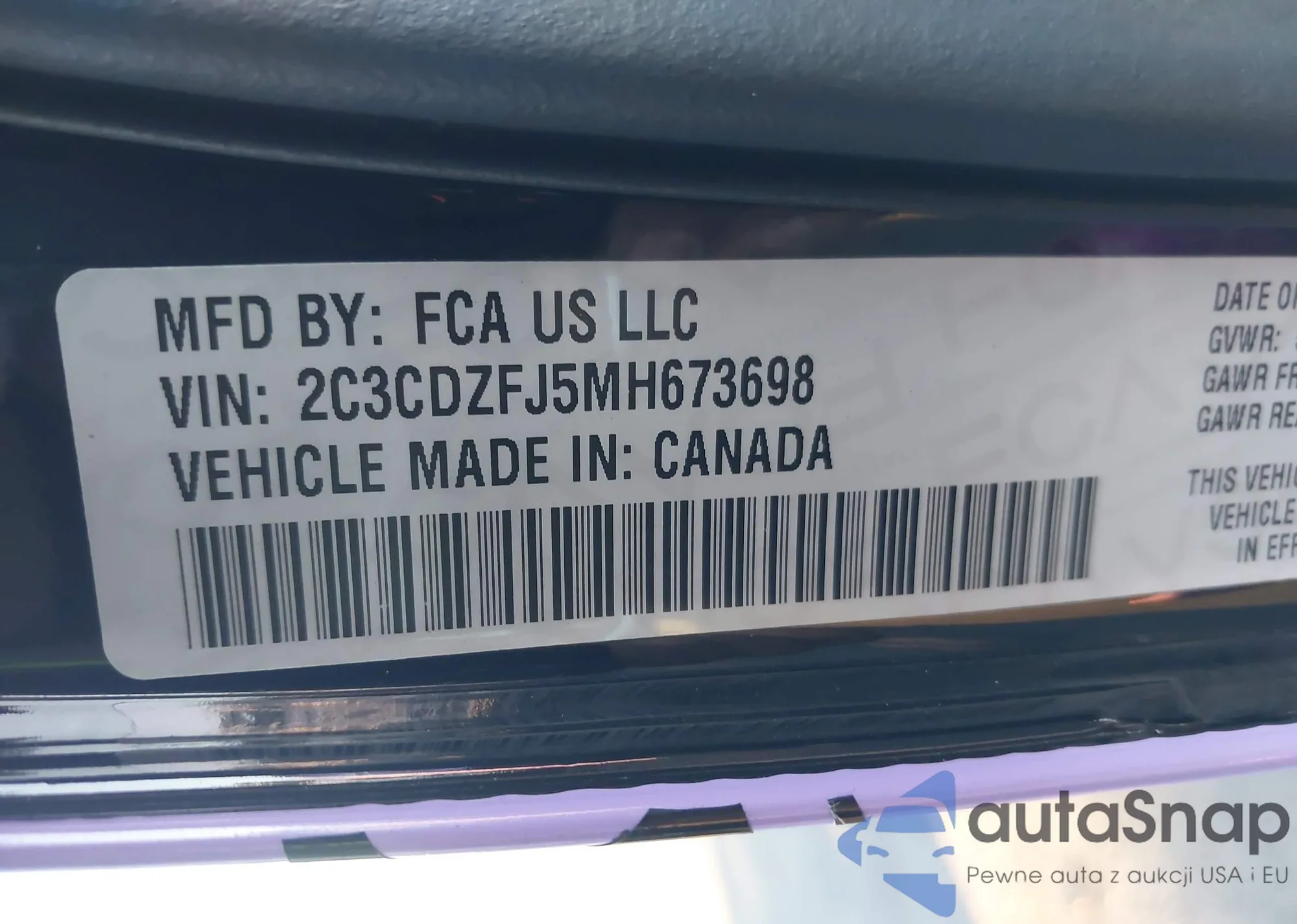 • VIN 2C3CDZFJ5MH673698