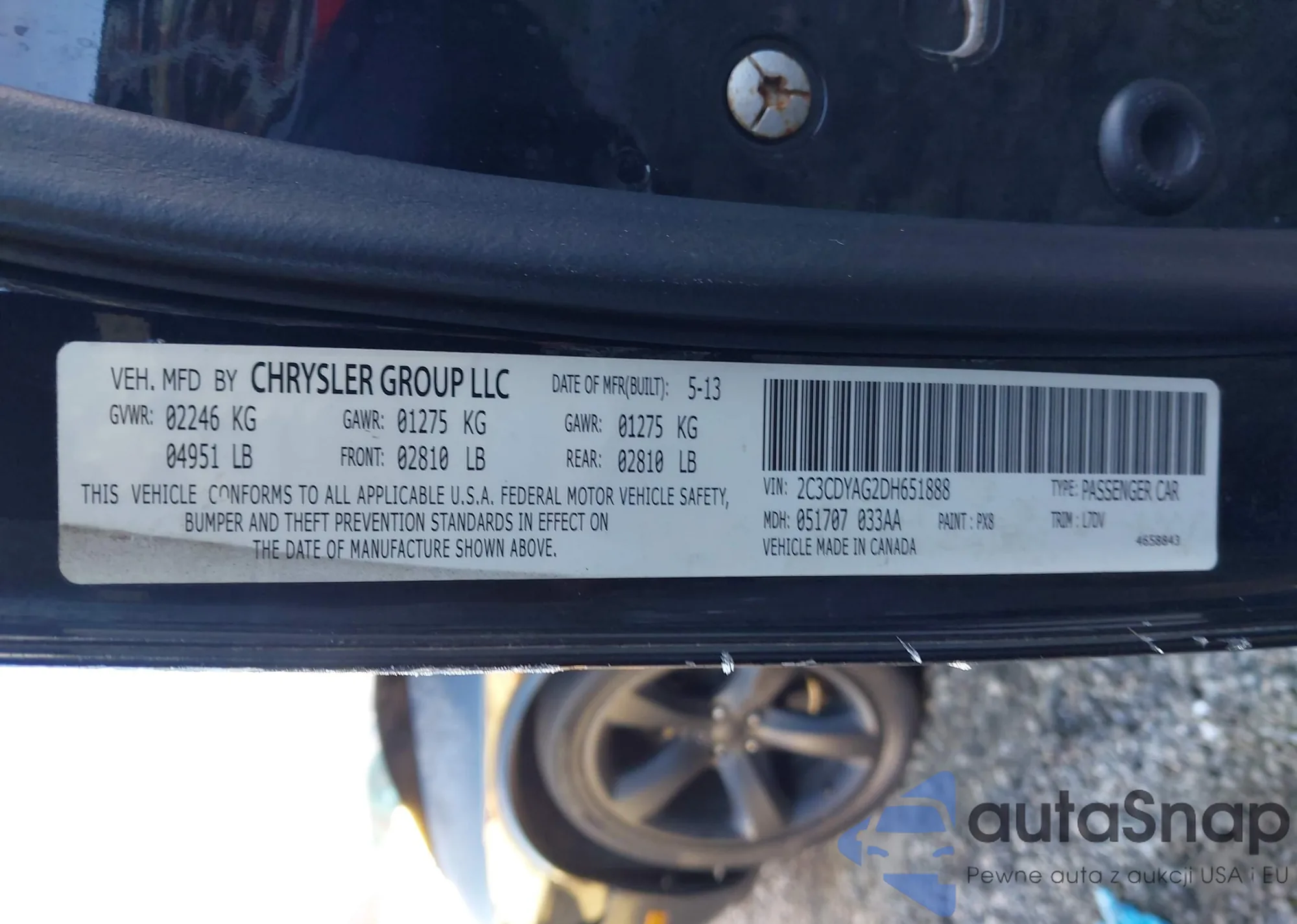 LOT: 43935871 VIN: 2C3CDYAG2DH651888